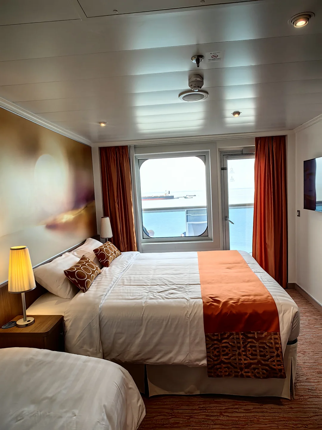 去年囤的,🎫还不错,阳台房4k一个人,想着五一人多升了1288vip 目前vip好用不好用不好说,这个等行程结束再说。 船上🈶 一次性拖鞋 电吹风 衣架管够 需要自带: 洗澡🩴 护发素 牙具 充电线(发现房间台灯两处usb口,化妆镜1处)