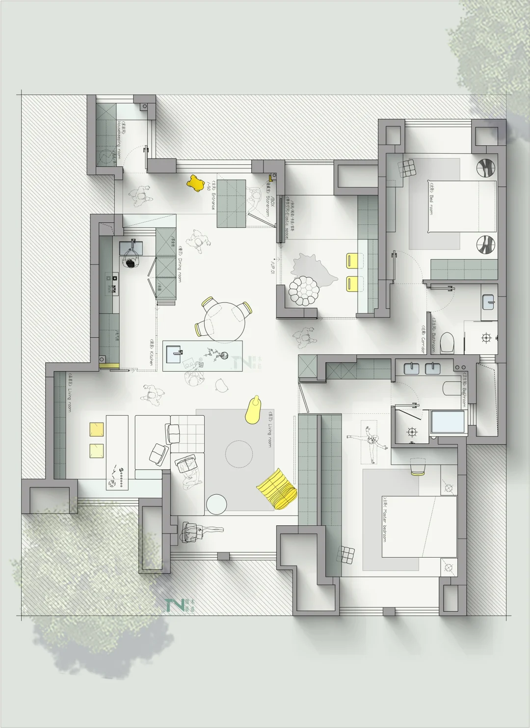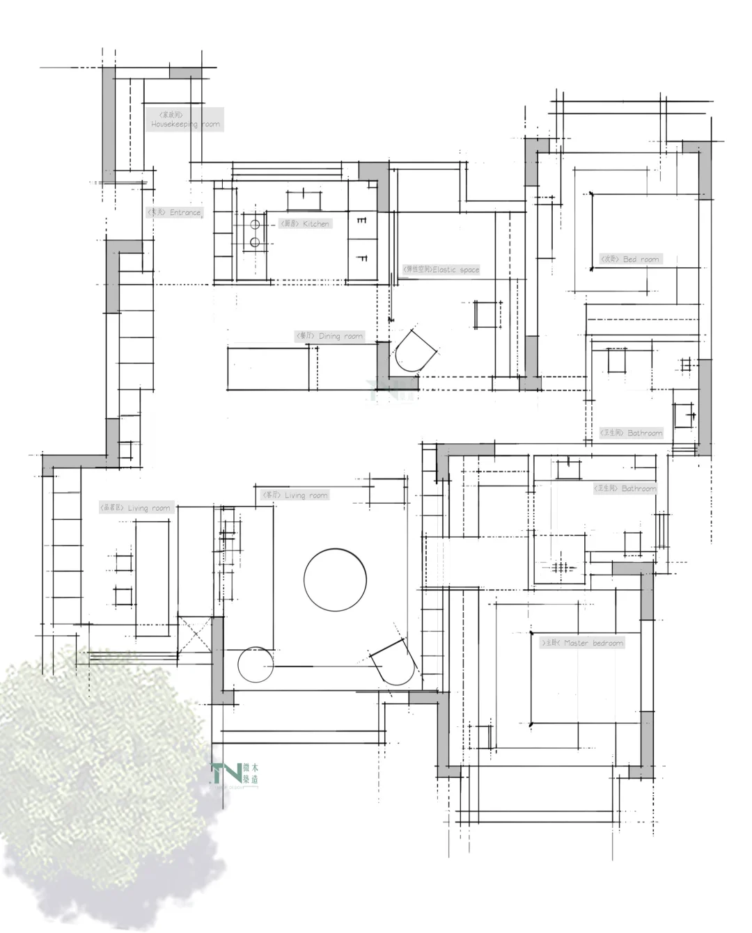 多方案思路分享/ 泡菜老板娘的家 1、二口之家(父母偶尔来住) 2、主卧套间,主卫计划要一个1.1*1.7的🛁 3、未来孩子房 4、可以办公、阅读、客房的空间 5、有一个可以放泡菜坛的储物间 6、厨房要打开(燃气公司要求有门) 7、客厅餐厅尽量大,空间感强 8、喝茶区