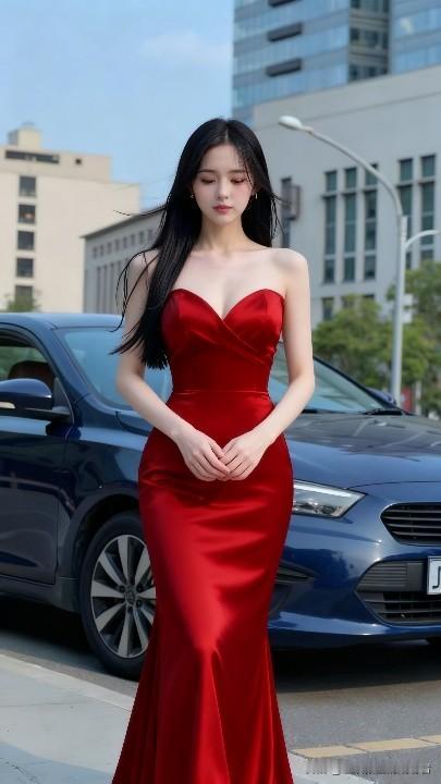 惊艳红裙,都市街拍,自信女神💃🏻✨