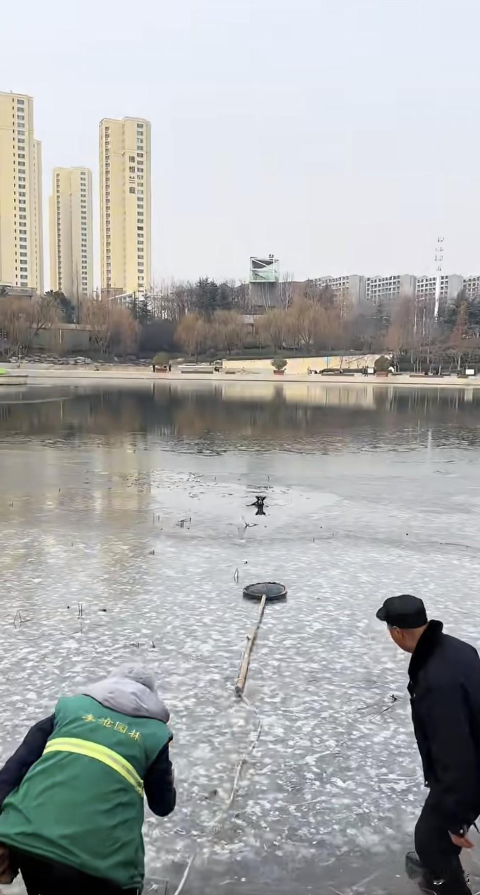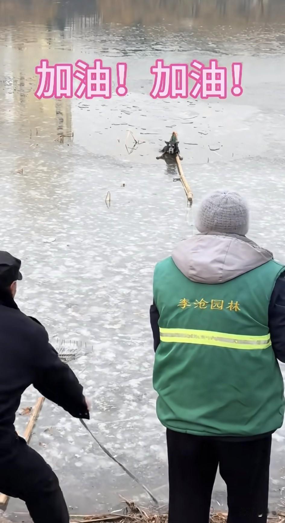 最近天气越来越冷,北方很多地方都开始下雪结冰了,这天一只流浪小狗在一个结冰的湖面上玩耍,结果不慎掉进一个冰洞,它拼命地挣扎哀嚎,可根本爬不上来,反而有下沉的风险。 就在这千钧一发之际,两位大叔发现了这只可怜的狗狗,他们立刻拿来一个一个渔网,然后用绳子系在木棍上,丢过去让狗狗抓住渔网,然后他们拉绳子,以这样的方式营救狗狗,虽然前面几次都失败了,可功夫不负有心人,他们终于把狗狗救了上来,真的是两位有爱心的好大叔啊!之后其中一位大叔还收养就这只可怜的狗狗。