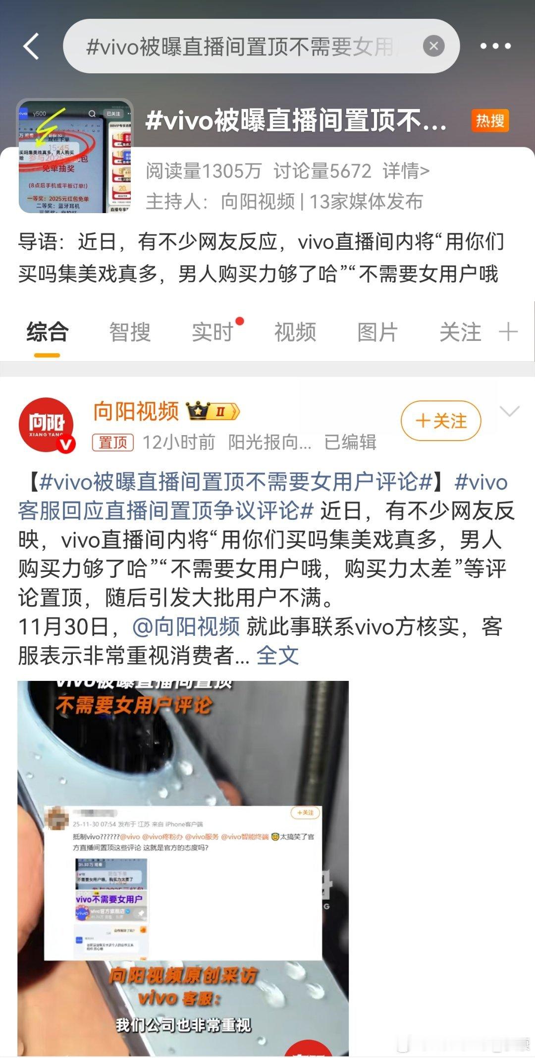 vivo直播间置顶不需要女用户看完这个热搜内容十分震惊,要么就是被人恶搞,要么就是品牌不想要了。