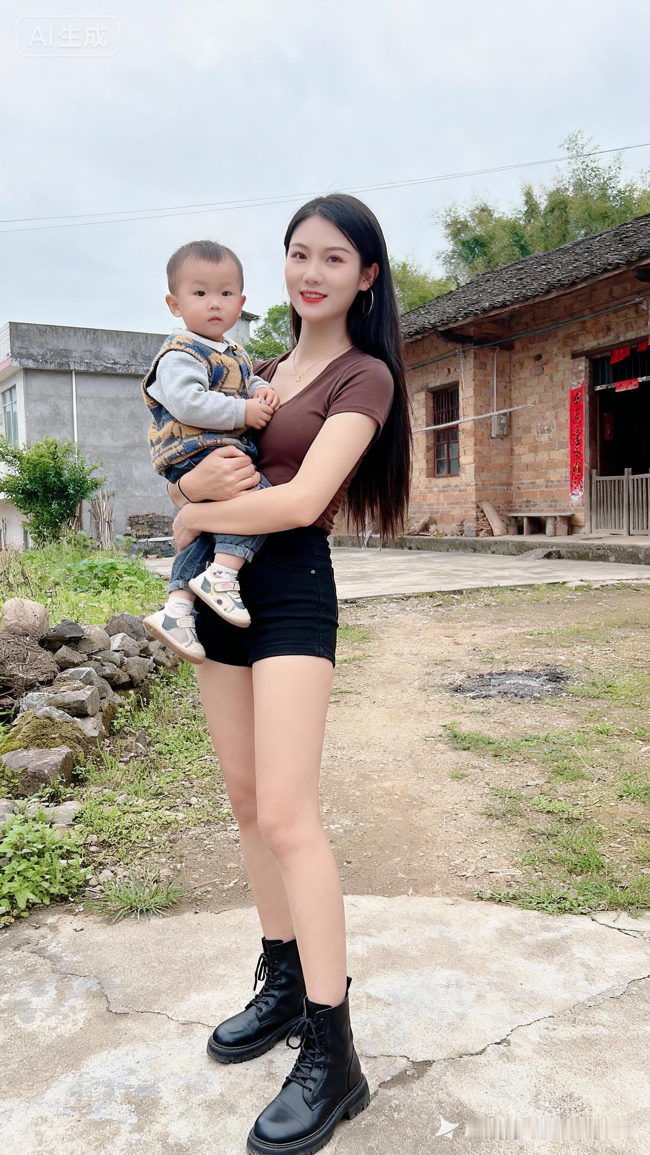 抱着宝宝在乡间小路上,感受大自然的美好!🌿👶🏻👩❤️👩