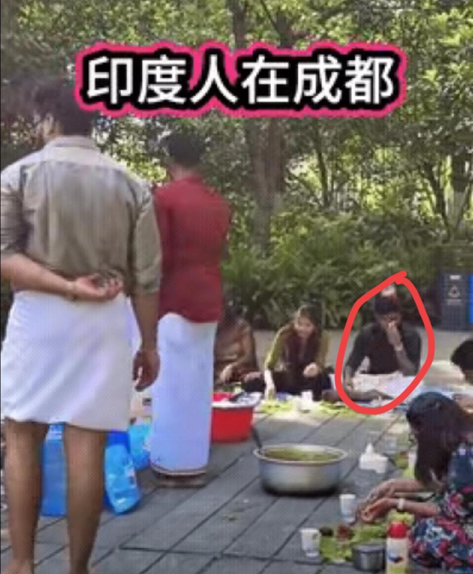 网上这几天都在播放一群印度人在成都公园开餐视频,这里面有个细节不知道大家注意到没有,咱先不说他们不收拾卫生,吃完就走造成环卫麻烦的事情,里面被做标注的这位,他有点与众不同,不是说印度人都用右手抓东西吃,左手不碰东西吗?因为左右手各有分工,可是,这位,我发现他是左右开弓,左右手都在灵活运用,难道这样吃东西味道更浓郁,您怎么看?