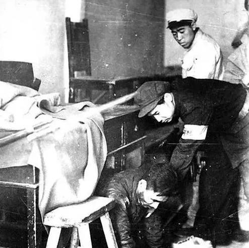这张照片记录的是1949年4月24日太原解放后,国民党第30军军长戴炳南被解放军搜捕逮捕的现场场景。 1948年10月太原战役打响后,解放军逐步包围太原城;戴炳南接任30军军长后,率部在太原城内修筑核心工事,依托城防负隅顽抗,拒绝解放军的劝降,是太原守军中最顽固的将领之一,其部在巷战中给解放军造成了一定伤亡。 1949年4月24日,解放军发起总攻攻克太原,戴炳南为逃避惩处,化妆藏匿于太原城内的隐蔽场所;解放军入城后展开搜捕,最终在室内隐蔽处将其抓获(照片即记录了这一搜捕逮捕的瞬间)。
