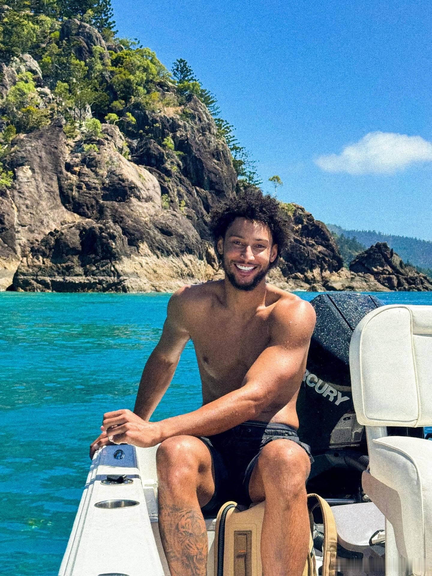 时隔两个月后,本-西蒙斯再次更新社媒,继续享受他的假期🎣