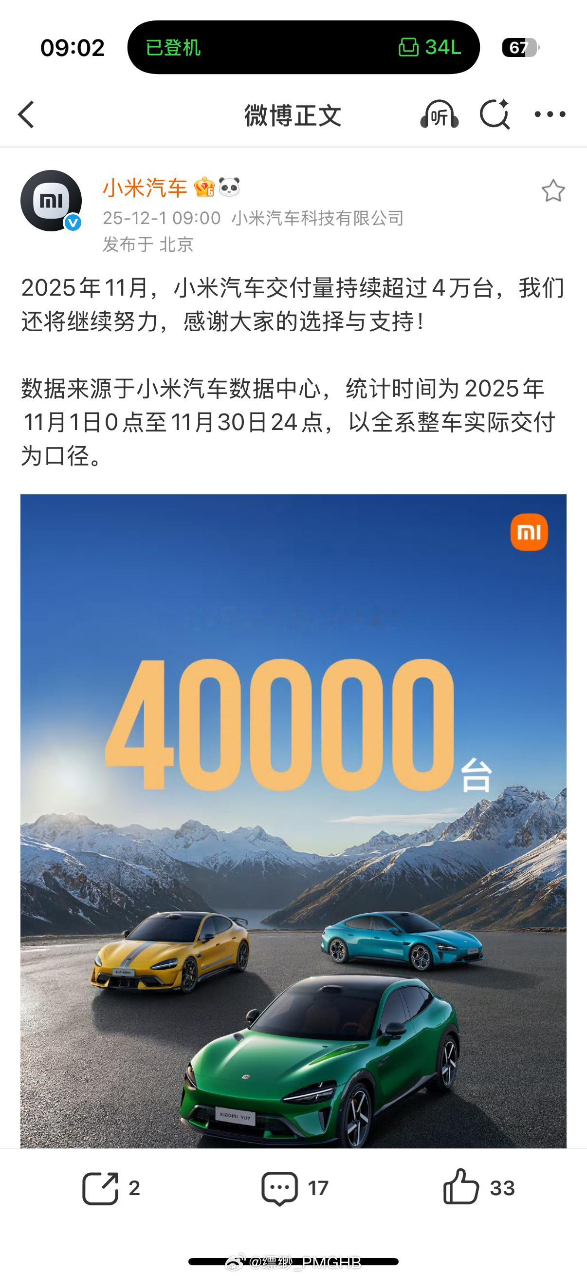 小米汽车11 月交付超 4 万台,但更有意思的是,小米的海报已经完全没有小字,标注内容全都放正文里了,小米离了小字能活,但.......又变成回旋镖咯