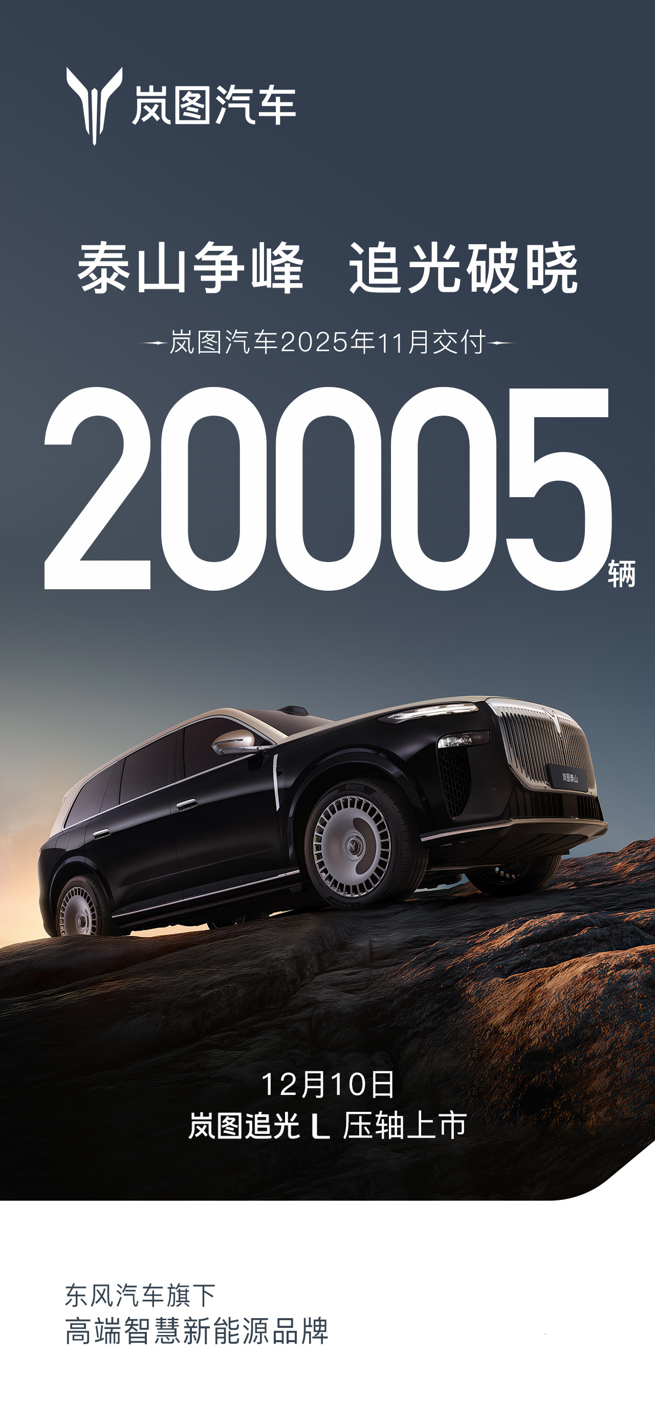 12月 各车企陆续公布11月销量成绩单~鸿蒙智行11月全系交付新车81,864台,同比增长89.61%,单月交付创新高。零跑汽车11月全系交付量达到70,327台,再创新高,同比增长超75%。小米汽车11月份交付量超过4万台。 岚图汽车11月交付20005辆,1-11月累计同比增长82%智己汽车11月销量13,577台,再创品牌新高。雷军回应小米汽车11月交付量超4万台