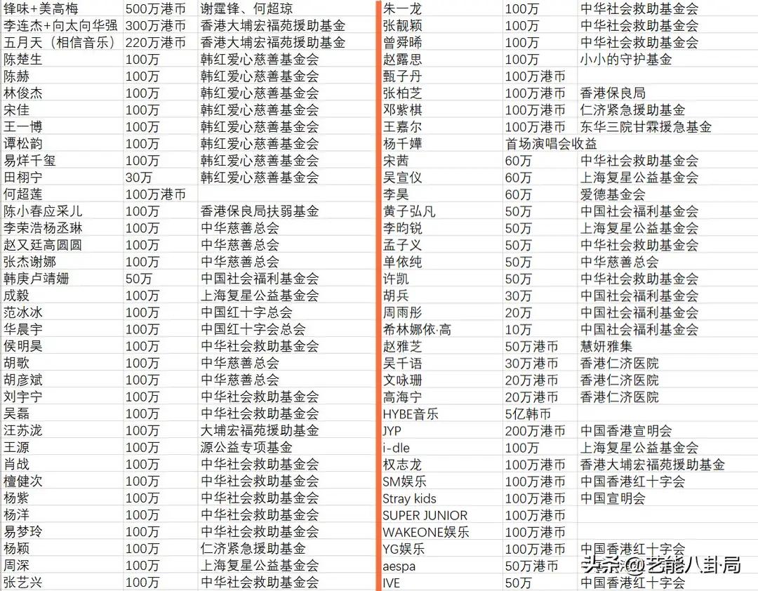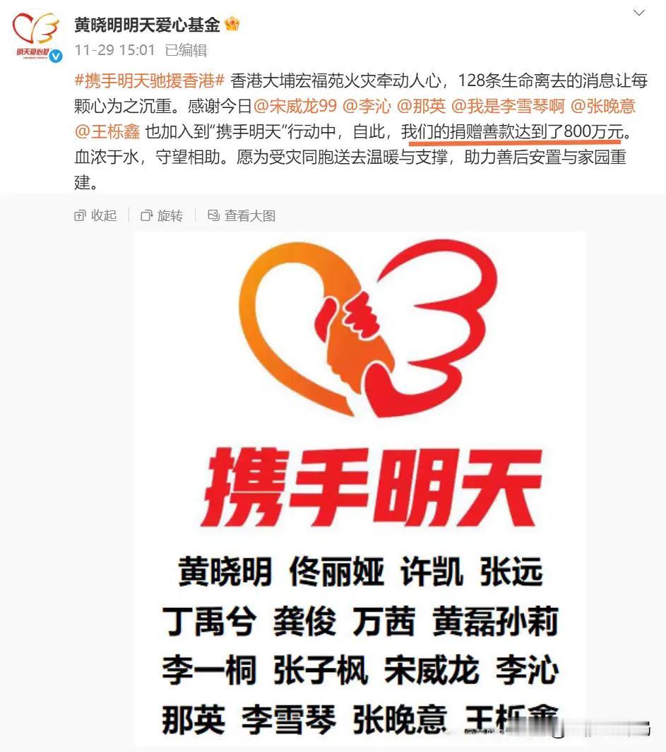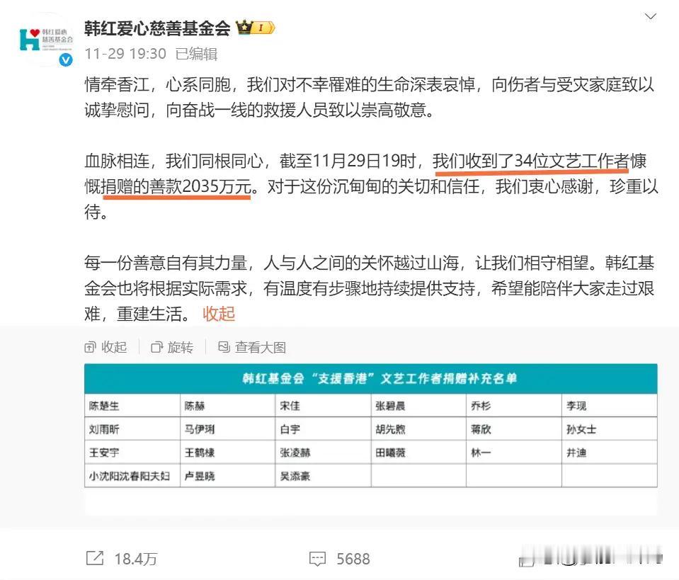 万万没想到!虽说宗馥莉在香港的官司败诉了,但面对此次香港火灾,宗馥莉毫不含糊。 她借助宏胜饮料集团,联合馥莉慈善基金会,向中国慈善总会捐款1000万!实在令人动容! 在事业刚起步阶段便慷慨相助,这份社会责任感着实令人钦佩! 做公益、行善事,怎会少了韩红和黄晓明呢? 韩红爱心慈善会联合众多明星,捐款2000多万。 黄晓明的明天爱心基金也捐出800多万。 值得一提的是,虽未看到王菲捐款,但谢霆锋和何超琼捐了500万,李连杰捐了300万。 不禁想问,周润发、张学友,梁朝伟捐款了吗?