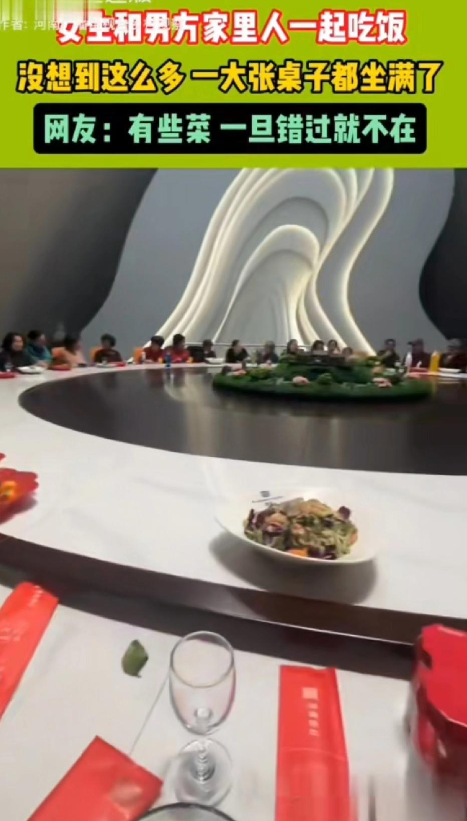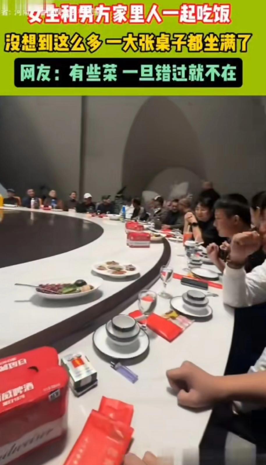 女生和男方家里人一起吃饭,网友感叹,没想到这么多,一大张桌子都坐满了。 网友:有些菜一旦错过就不在了,社恐的人如果找了这样的大家族真是一言难尽[捂脸][捂脸] 想想这么多家人在一起吃饭,也只能去饭店,如果在家做就是吃席。 视力不好的人吃完这顿饭,回家的路上碰面感觉这人说话有点“耳熟”就是想不起在哪见过。[笑哭][笑哭] 饭店:今天招待这一桌就回本一半。