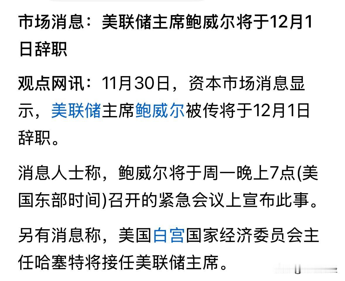 传闻鲍威尔将在12月1日晚间辞职,应该是今天AH上涨的主要原因之一吧? 而人民币汇率估计也将加速上涨。 A股莫非轻舟已过万重山了? 11月浮亏近6.0 W,希望12月的A股能收复账户上的11月失地,我要求的实在不多!