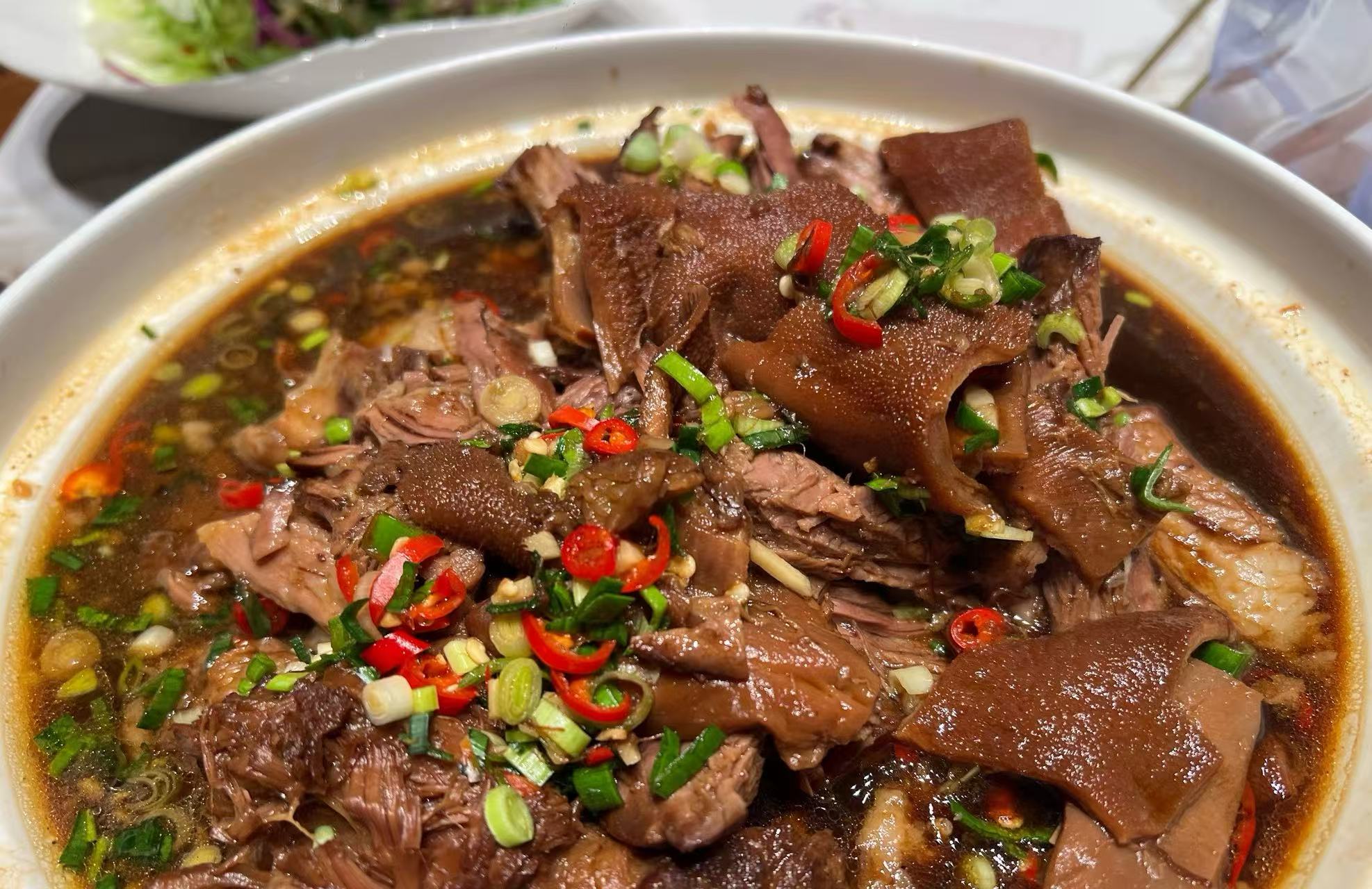 1️⃣.秘制套肠,卤汁泡足3小时,咬下去油脂在舌尖爆开,软糯又带嚼劲