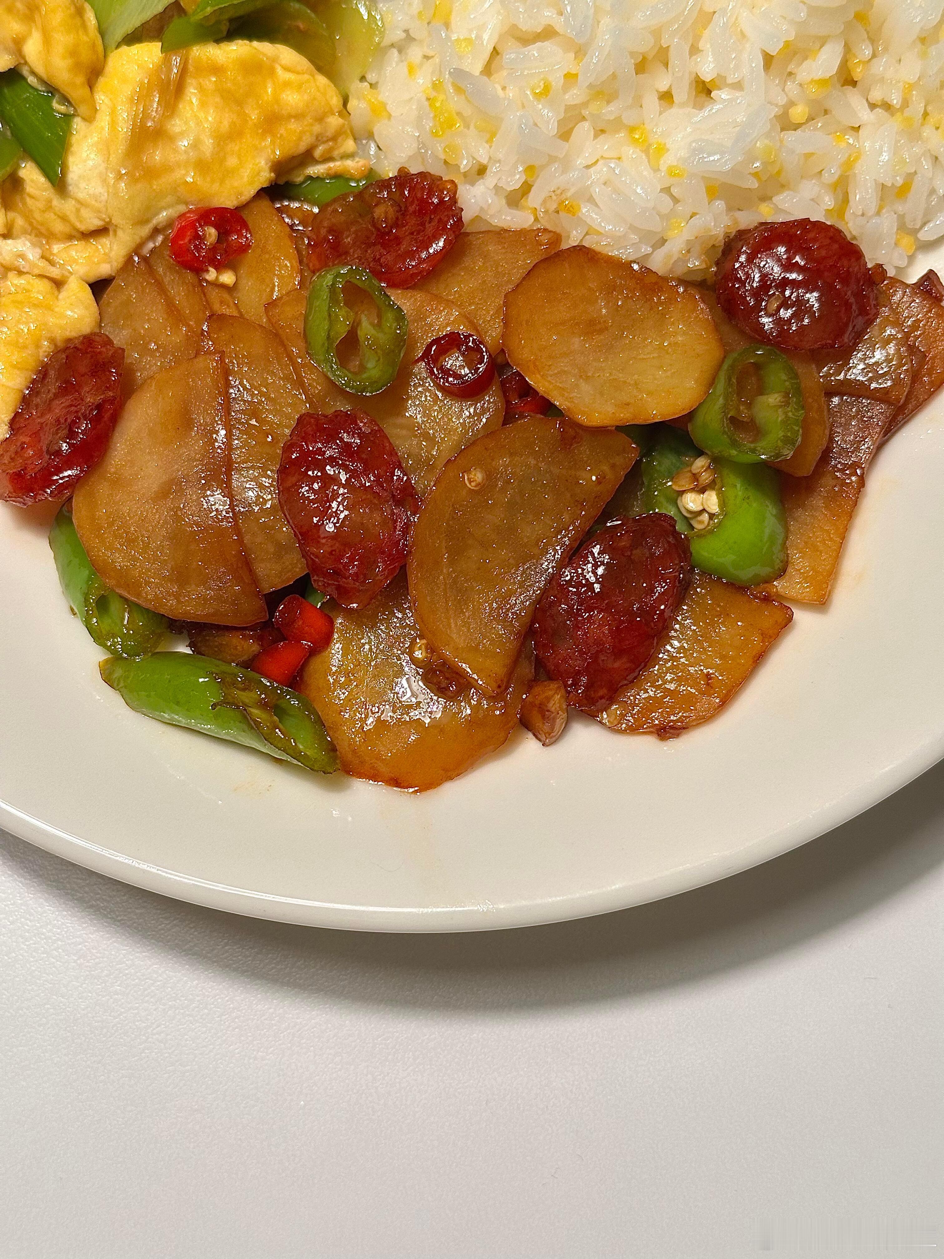 今天的饭🍚土豆片炒腊肠葱爆鸡蛋