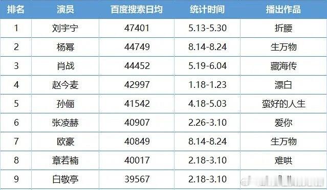 刘宇宁流量真的好高啊,每个榜单都名列前茅