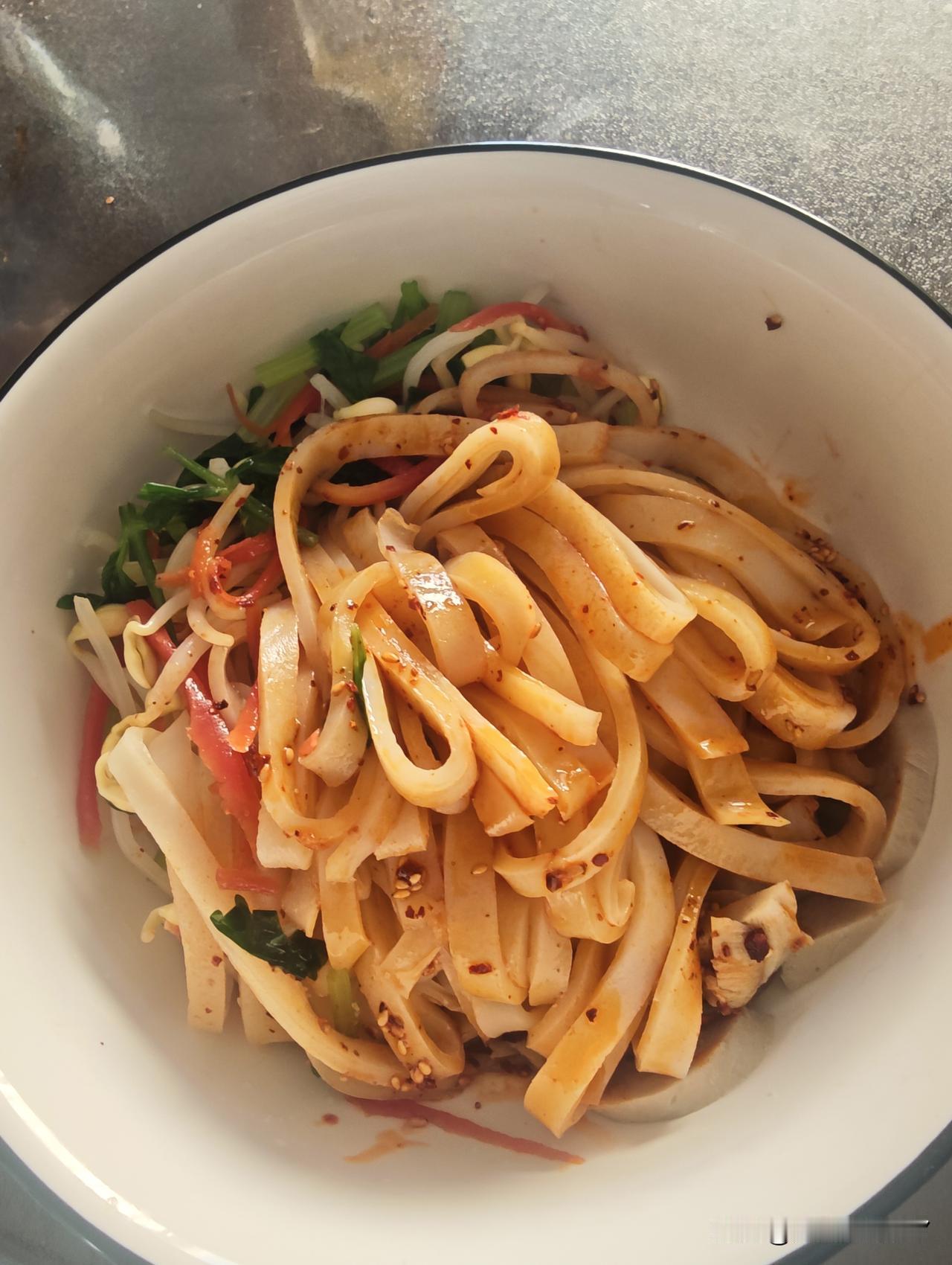今天中午,老婆在家蒸的凉皮。大冬天的吃一碗自家做的凉皮,比卖的劲道多了。