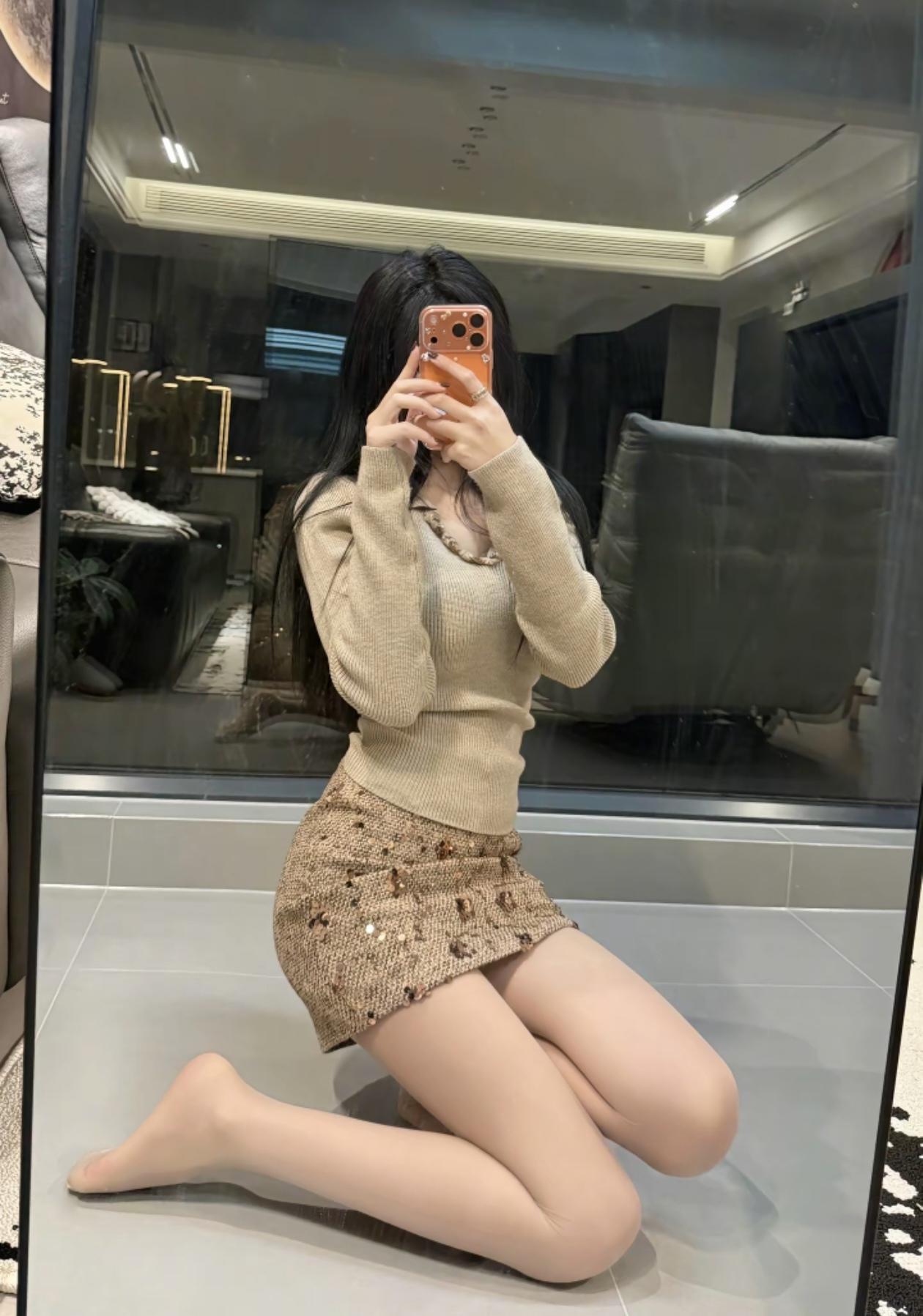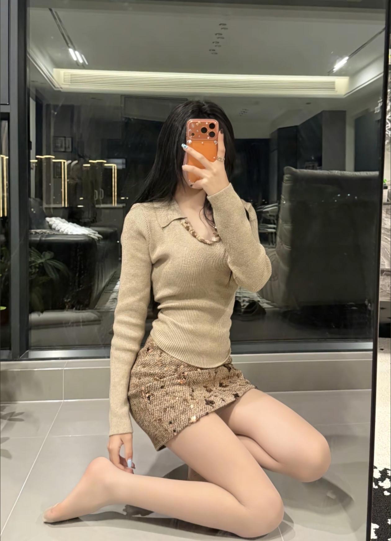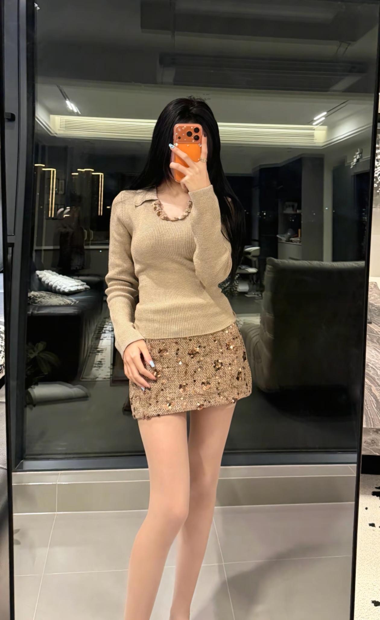 米色毛衣搭配闪亮短裙,简约又时髦!👗💃🏻
