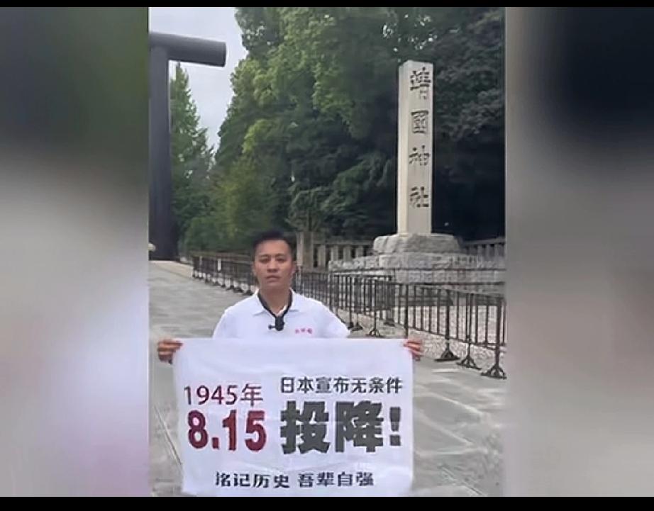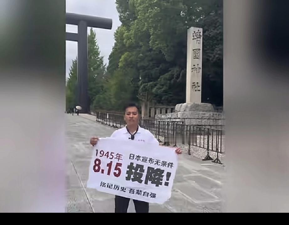 近日,一名中国小伙在日本靖国神社的柱子前高高举起一张海报,上面写着“1945年8月15号,日本无条件投降。铭记历史,吾辈自强”。大家是否还记得铁头在日本靖国神社撒尿一事?如今也不知铁头近况如何。