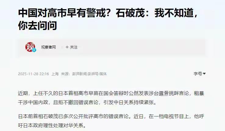 高市被曝想争取他国支持缓解外交摩擦 听说最近日本首相高市早苗有点忙,忙着到处“打电话求援”,想找人帮她扑灭自己点着的外交火苗。可现实却像极了社恐人硬挤进陌生饭局——鞠躬没人理,搭话被无视,连精心挑的衣服都成了网友吐槽的梗。这场面,尴尬得连隔壁邻居都忍不住脚趾抠地。 事情还得从她那句“台湾有事就是日本有事”的狂言说起。这话一出,简直像往中日关系里扔了一串鞭炮,炸得双方外交官手忙脚乱。中国驻大阪总领事薛剑直接怼出“砍头论”,日本国内炸锅抗议,可高市大概没想到,最打脸的竟是自家后院:日本网友怒喷“先管好嘴再选衣服”,美国网友更损,调侃“缺衣服我们送你”。就连玉渊潭天都忍不住幽默提问:“高市早苗的脑袋莫非被驴踢了?” 更扎心的还在国际舞台。G20峰会上,她迟到近一小时,结果全场最抢镜的成了等她的一把空椅子——“高市专属迟到椅”表情包一夜爆红,播放量超2000万。合影时她拼命向南非总统拉马福萨鞠躬,人家却和巴西总统聊得火热,连个眼神都没舍得给她。想凑到中方代表团面前刷存在感?工作人员一个礼貌手势请她移步,完美诠释了什么叫“强扭的瓜不甜”。 其实明眼人都懂,高市这番操作看似强硬,实则慌得一批。天普大学教授直接点破她“非常清楚自己在做什么”,可这种玩火行为,烧到的却是日本自己:中国游客订单清零,酒店老板哭着说损失2000万日元,日元汇率跌到156。难怪日本学者哀叹:“日本显然拥有的筹码更少”,就算抱美国大腿,人家也悄悄把航母调远了,生怕被拖下水。 如今高市的支持率怕是比她的外交技巧还脆弱的。有媒体调侃,这些年日本首相都“短命”,但像她这样“不想干”的还是头一个。要是再这么满嘴跑火车,恐怕真要应了玉渊潭天的预言——“得付出代价了”。毕竟国际政治不是变装秀,光靠鞠躬、换装、抢话筒,可赢不来真正的尊重。你说呢?
