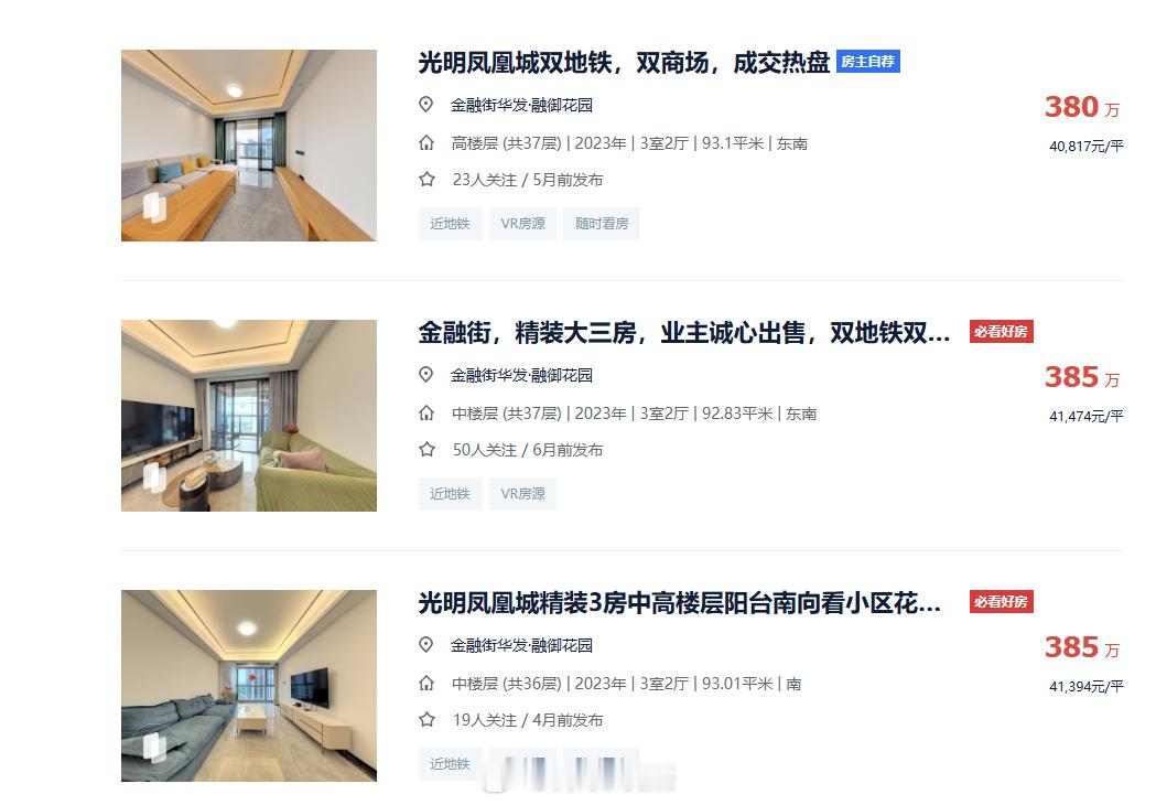 光明玖龙台对面的笋盘金融街93平,350多万现在肯定是买不到的,看了下实际价格370-380万左右还可以买个好楼层。性价比还可以的,位置也比其他新房好。 深圳