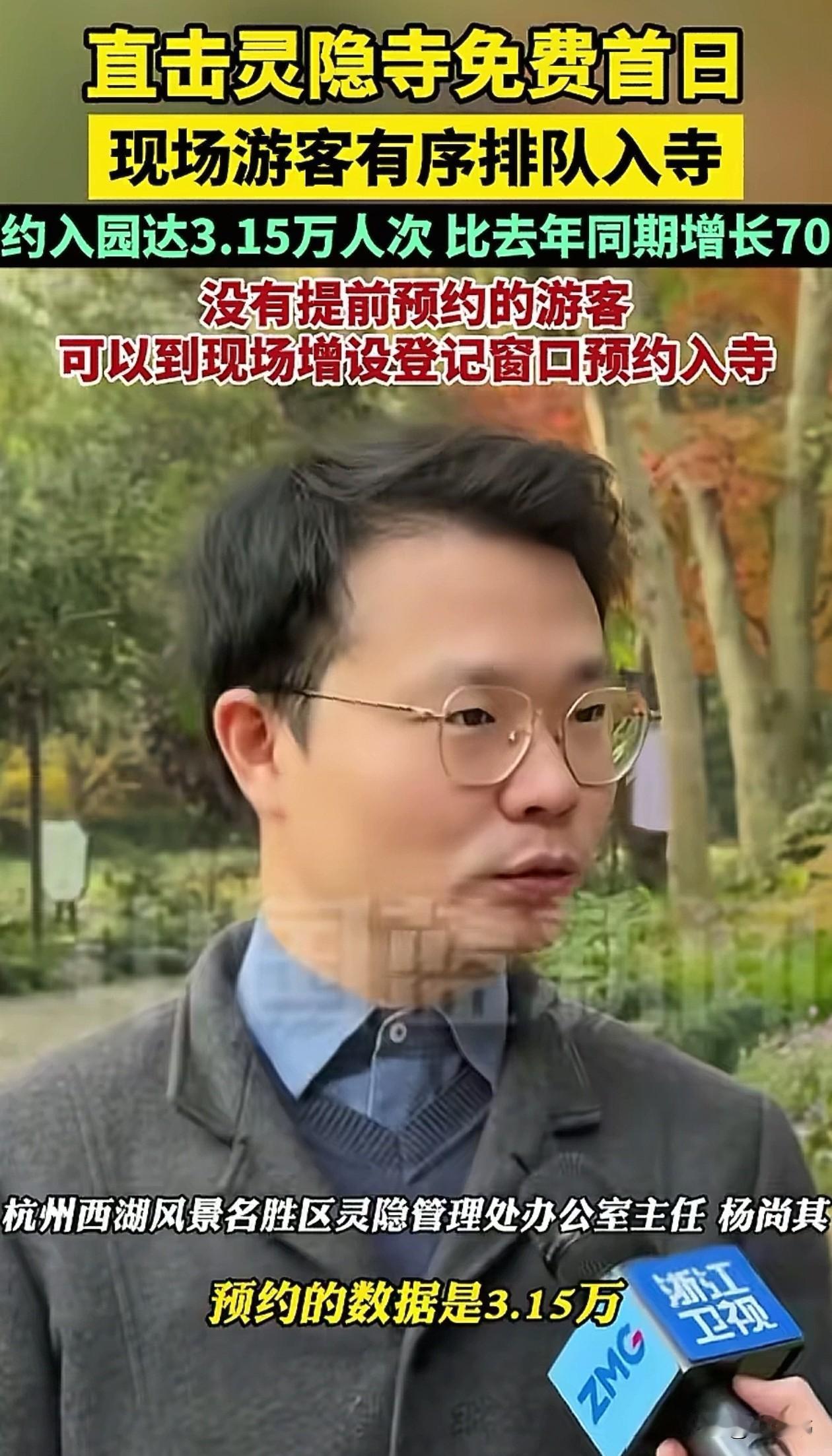 灵隐寺, 还没有意识到事情的严重性, 免门票开放首日,预约游客数达到了3.15万人,跟往年同期相比增加了70%! 有不少外地游客甚至专门驱车前来,要是放在以前,肯定不会出现这样的情况。 游客人数增长这么多,就非常考验灵隐寺的接待能力了,这么多游客能不能玩的舒心,景区能否避免拥挤,都是需要考虑的问题。 可换个角度想,要是换以前还要门票的时候,这3.15万张门票就得多少钱啊!也不知道灵隐寺有没有后悔取消,这无疑失去了一个重要的收入来源!