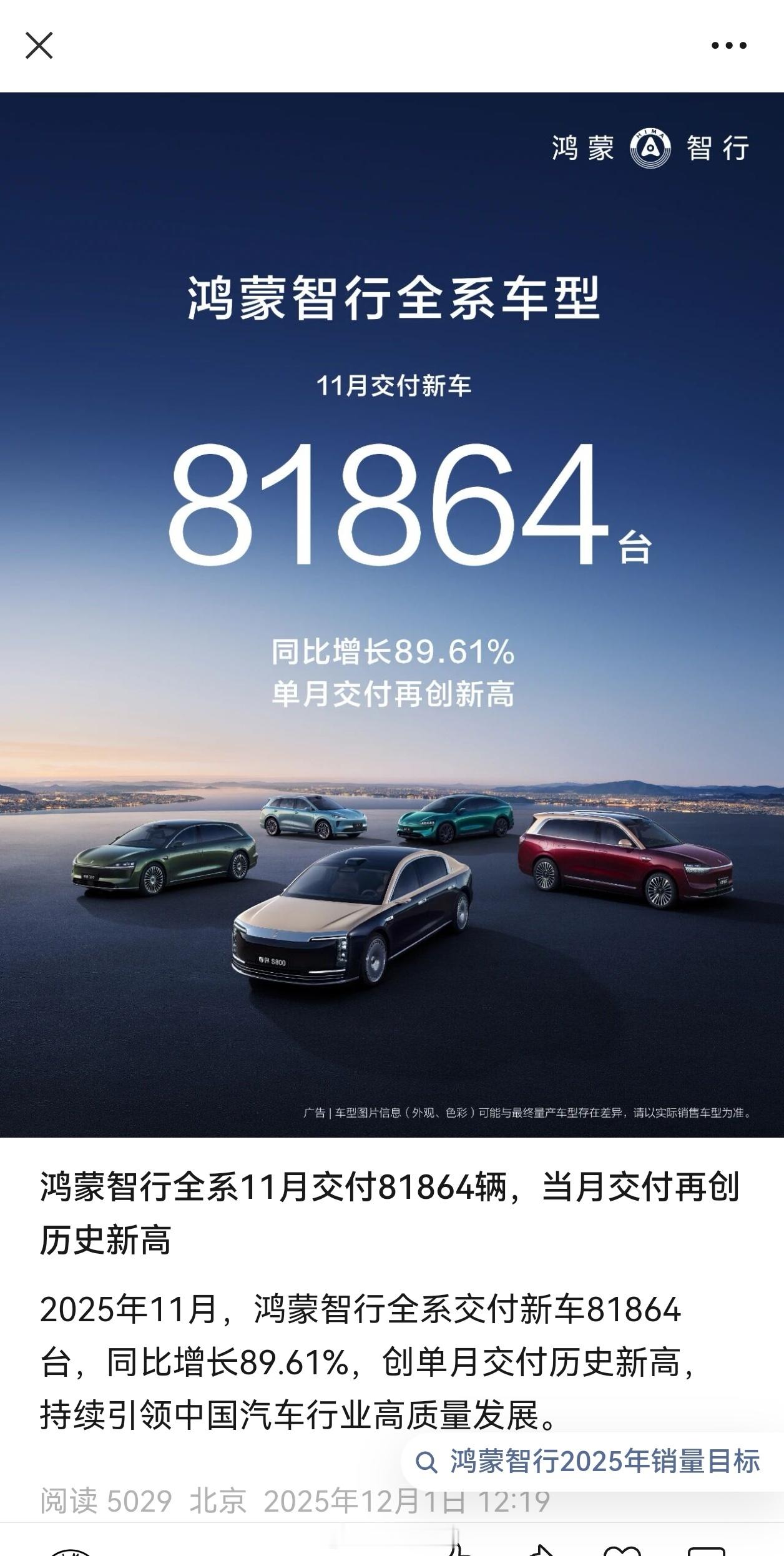 11月各家销量今日12月1日,部分品牌已经发了销量了~鸿蒙智行:81864小米: