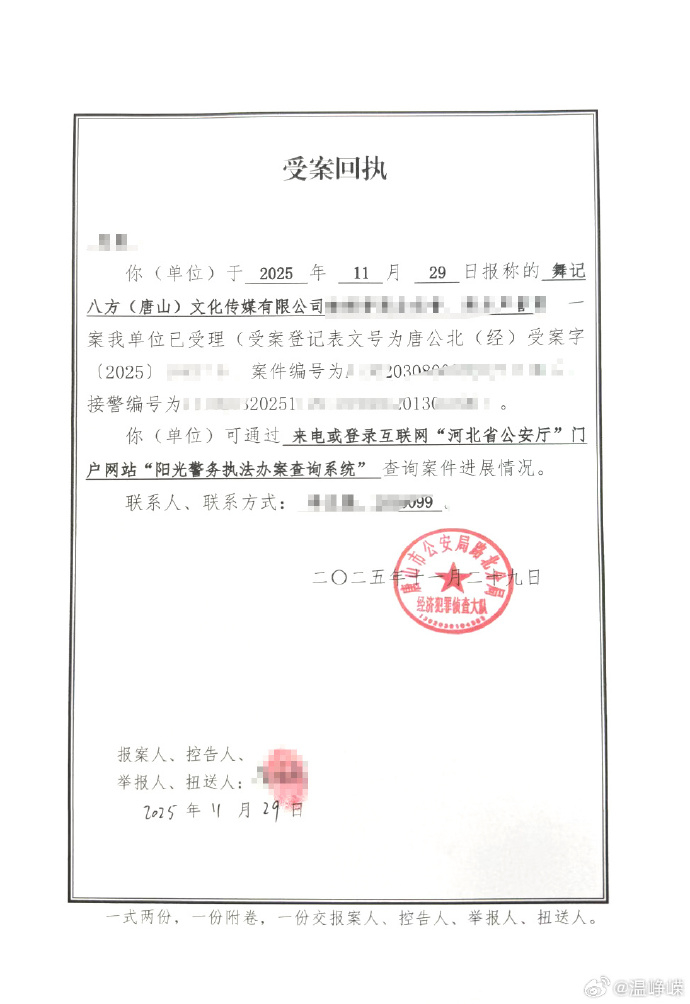 #温峥嵘称被某公司雇水军抹黑#【演员温峥嵘称“AI事件反转”不实并报警!曾自曝被仿冒带货】#温峥嵘报警#演员温峥嵘此前曾自曝刷到主播用AI假冒自己的直播间,事件引发关注。近日,网络上出现“温峥嵘团队把假货和AI联系起来了”“温峥嵘AI事件反转”“温峥嵘疑似翻车了”等热搜词条。12月1日,南都N视频记者获悉,温峥嵘发文称相关热搜词条为不实信息,已对此事报警并收到警方受案回执。12月1日,演员温峥嵘在社交平台晒出唐山市公安局路北分局的受案回执,并配文字称“报警立案”,同时发出声明。声明表示,近期,网络上频繁出现以盗播、AI换脸等方式,非法使用温峥嵘女士形象售卖假冒伪劣产品的不法行为。经权威媒体曝光后,相关平台已对部分侵权人采取了封禁网络店铺、删除侵权作品、下架假冒伪劣商品等措施。11月14日,网络上开始出现“温峥嵘团队把假货和AI联系起来了”“温峥嵘AI事件反转”“温峥嵘疑似翻车了”“曝温峥嵘卖面膜出事把锅推给AI”等热搜词条。温峥嵘团队表示,大量社交媒体账号在这些热搜词条下,持续发布文案相同、相似的不实信息,造成恶劣影响。经团队方面核查发现,相关热搜词条的创建人和主持人,以及在热搜词条下批量发布不实信息的账号,均由长沙某传媒公司统一运营和管理。“该公司及背后的委托人,有组织、有预谋、有针对性地捏造并批量发布不实信息的行为,严重损害了温峥嵘女士的名誉,并对我司的商业信誉产生了重大不利影响,已涉嫌刑事犯罪。”温峥嵘所属公司舞记八方(唐山)文化传媒有限公司表示,为依法维护温峥嵘的名誉及公司商业信誉,已委托专业律师团队,对长沙某传媒公司受托发布不实信息的行为完成了取证工作。据声明,该公司工作人员已于11月29日,携证据材料至有管辖权的公安机关处报案,公安机关现已依法受理本案并出具了相关法律文书,案件正在侦办中。在声明中,温峥嵘所属公司强烈谴责雇佣网络水军,恶意捏造不实信息并侵害艺人名誉的违法行为,表示将严肃追究相关主体的法律责任,绝不姑息。南都此前报道,11月初,演员温峥嵘自曝刷到主播用AI假冒自己的直播间,上前质问却被拉黑。事件发生后,抖音电商方面表示,不少商家和达人在未取得授权情况下,利用AI、特效仿冒名人等方式进行带货营销,误导消费者。平台已启动专项治理,处置涉及侵权仿冒违规的达人账号1.1万个,其中涉及仿冒温峥嵘、李玫瑾、罗永浩、董宇辉等多位名人的账号。采写:南都N视频记者 林诗妍