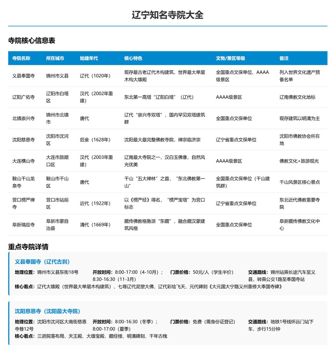 灵隐寺一天3.15万客人,火爆的很,辽宁网友不服,为什么辽宁的寺院就没有人来游玩,我不禁思考辽宁有寺院吗? 我查阅下,其实辽宁的寺院不少,最出名的就是奉国寺这是非常出名的寺院,现存最古老辽代木构建筑,世界最大单层木构大雄殿全国重点文保单位、AAAA级景区列入世界文化遗产预备名单,可以看出这个寺院的实力的恐怖的地方,一般的寺院都望其项背! 辽阳广佑寺,大连横山寺,鞍山千山龙泉寺,北镇崇兴寺等等都非常出名,沈阳最有名气的就是沈阳慈恩寺,都是非常不错的寺院,只是辽宁对文旅重视,但是缺乏对古代文化遗迹的宣传,导致这些汉、唐、辽时代的古代建筑物没有被世人了解,这多少有点小小遗憾! 希望大家周末没事也多到寺院走一走看一看,另外可以丰富大家的精神家园,千万不能出现物质丰富的但是精神是贫瘠的,那样是很无聊的事情,好的东西应该多分享给世人,精神食量少不了的,激励后代源源不断的奋斗!