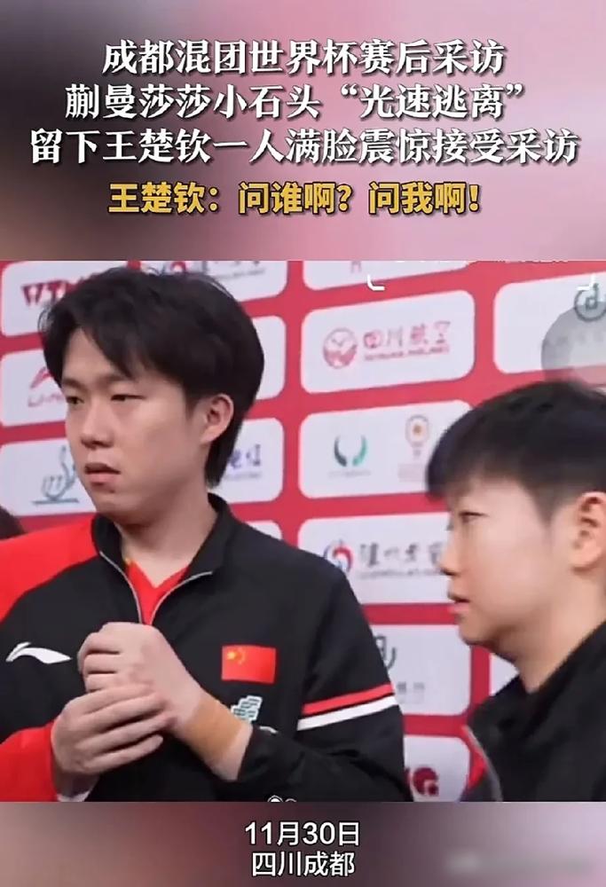 头哥就这样被莎莎丢在采访区,头哥一脸懵的问,问谁呀? 问我啊? 问我啊? ”记者一个“嗯”字,愣是把他钉在了采访区。 谁能想到,国乒采访区秒变“丢手绢”现场,蒯曼先撤,小石头紧随其后,莎莎一看弟弟妹妹溜得飞快,也二话不说跟着跑路,留下大哥独自面对长枪短炮。 这场景咋这么眼熟呢? 可不就是“天道好轮回”的现场版! 当年马龙被采访时,王楚钦和樊振东也是脚底抹油溜得比兔子还快。 龙队当时那句“都跑了? ”的经典画面还在球迷脑海里存着呢。 这回轮到头哥亲身感受被“抛弃”的滋味,真是风水轮流转,采访区今年到你家! 国乒这个“溜采访”的传统,简直成了队内非物质文化遗产。 表面看是年轻人调皮,细品全是默契。 老将扛起责任担当,新人被保护着快速成长。 马龙当年扛了多少次单独采访,给弟弟们挡了多少问题? 如今头哥成了哥哥辈,自然要接过这份“甜蜜的负担”。 这种传承不是开会喊口号,是在一个个溜走的背影和留下的笑声里完成的。 你看记者那声“嗯”,憋着笑又带着点“可算抓住一个”的得意。 被剩下来的那个,反而成了全场焦点。 其实头哥心里门儿清,弟弟妹妹们不是真甩锅,是信任他这个大哥能独当一面。 这种团队间的信任感,比任何战术布置都珍贵。 赢了球一起狂,接受采访时互相“坑”,这才是家人般的相处模式。 想想龙队当年被“抛弃”时嘴角那抹笑,再看看头哥现在一边懵一边忍不住笑场的样子。 国乒的可爱,就在于这些不经意的瞬间。 他们不是冷冰冰的夺冠机器,是一群会打闹会玩笑的年轻人。 这种鲜活的生命力,才是球迷爱他们的真正原因。 下次采访,不知道头哥会不会学乖了,抢先一步开溜? 或者干脆认命,主动拿起话筒,“都别跑,这次我带头说! ”毕竟被“坑”过的人才懂得怎么“坑”回去。 国乒的采访区连续剧,咱们可是追定了!