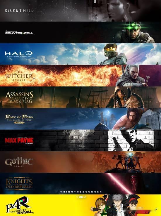 近年来,游戏行业掀起一股“重制版热潮”。随着技术进步与玩家情怀需求的增长,包括《生化危机2&3&4》、《寂静岭2》、《最终幻想7》等,众多经典作品获得了更高清的画面,更现代的操作方式和玩法,以及原作中没有的全新内容,重新回归大众视野。 近日,博主Rino对目前正在开发的重制版游戏进行了汇总,包括: 《寂静岭》 《细胞分裂》 《光环:战役进化》 《巫师》重制版 《刺客信条IV:黑旗》(传闻) 《波斯王子:时之砂》 《马克思·佩恩 I + II》 《哥特王朝》重制版 《星球大战:旧共和国武士》 《女神异闻录4》