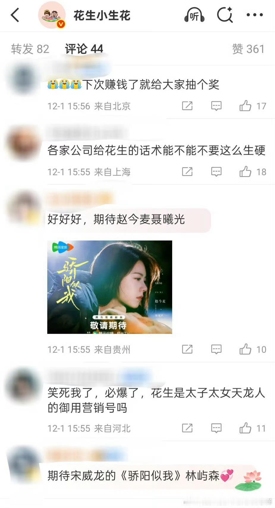 花生发的骄阳似我的通稿感觉评论区不怎么买账