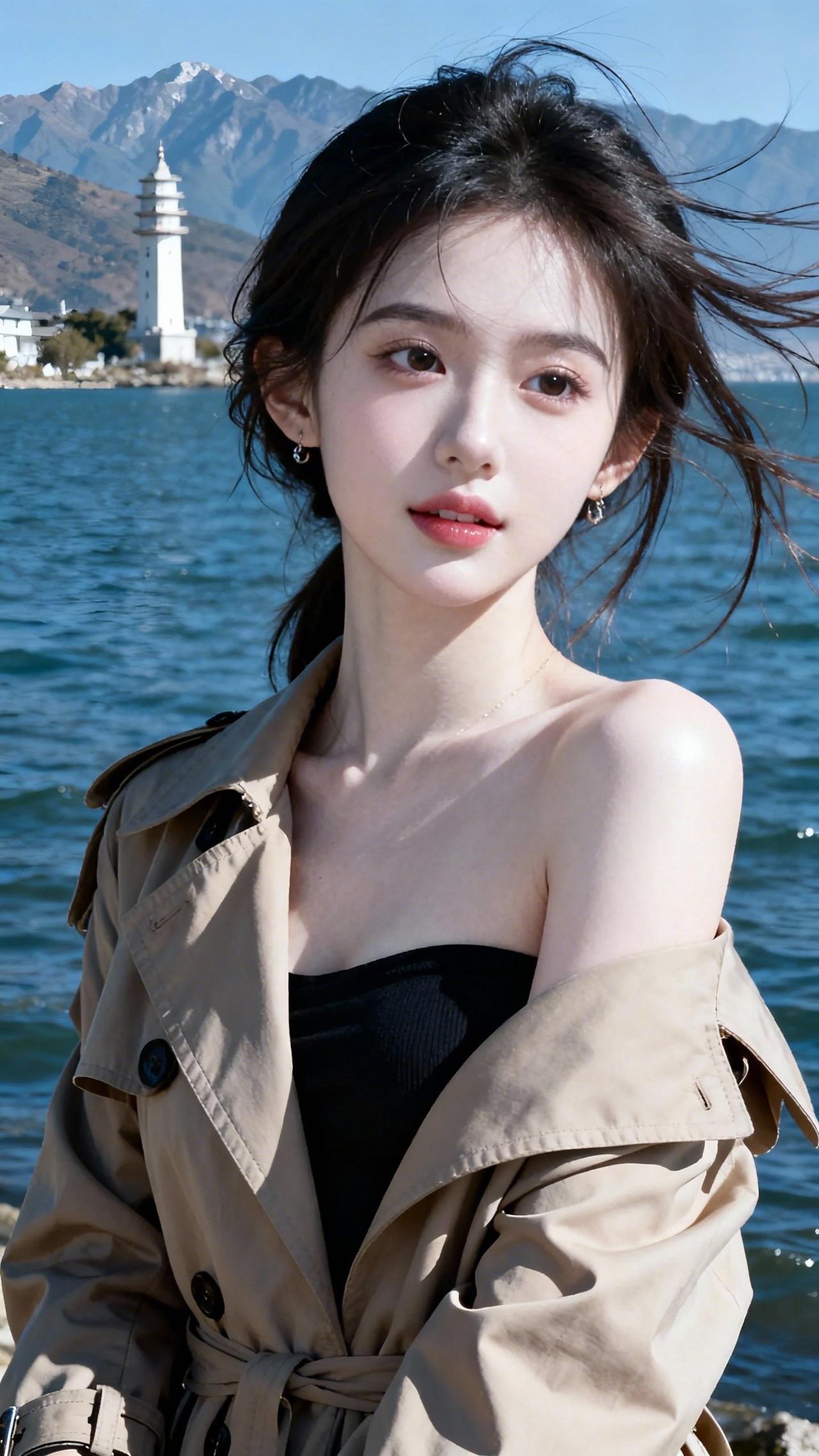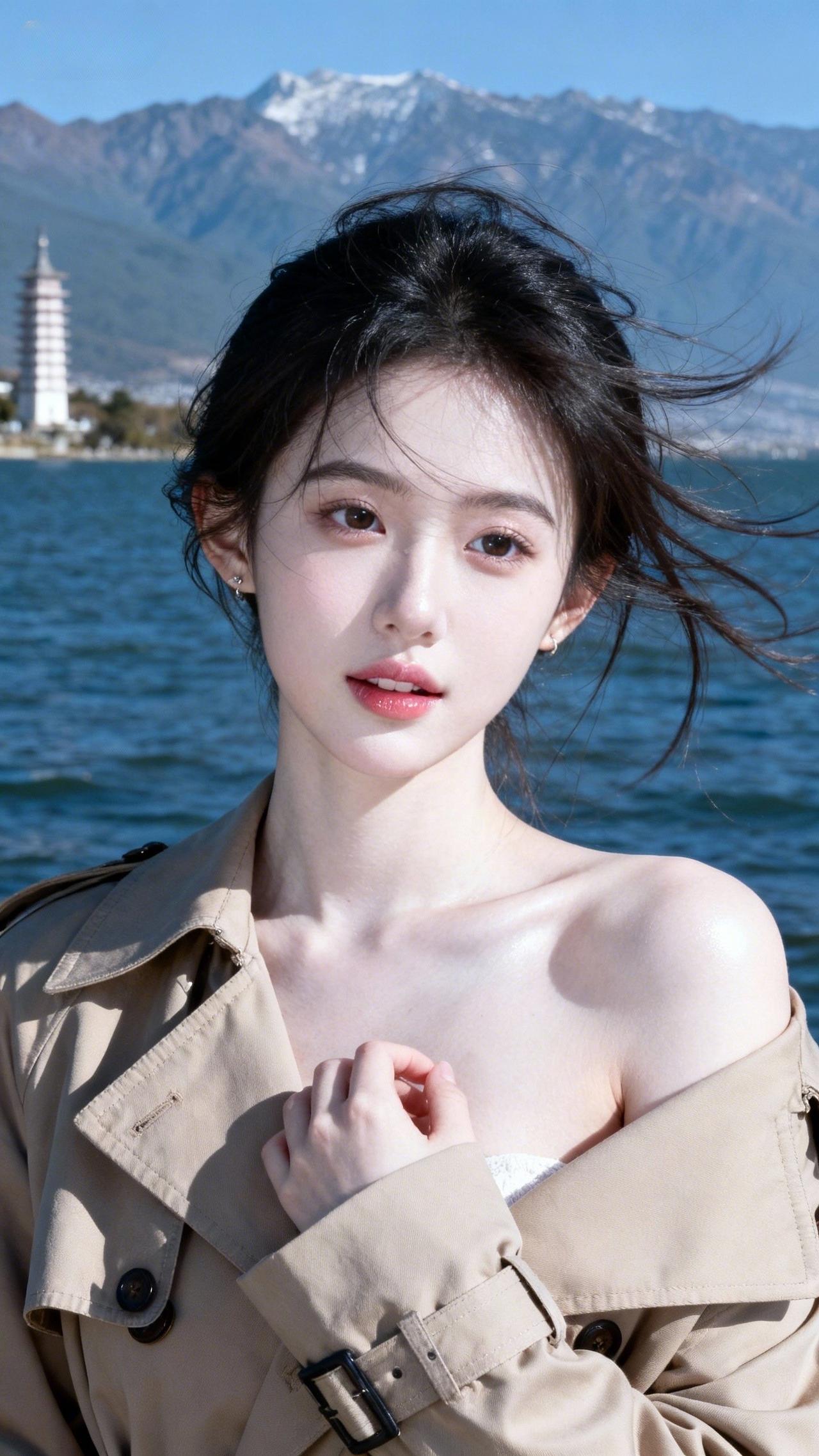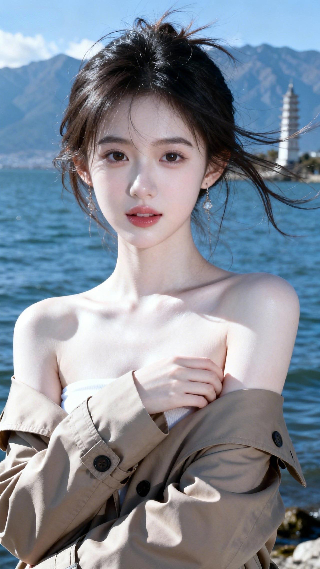 海边仙女 风把发梢往耳后推的时候,我正坐在洱海边的礁石上。 那远处崇圣寺的塔尖亮得发暖,苍山半腰还沾着没化的雪,风里全是水和阳光的味道。卡其风衣松松垮垮挂在肩上,晒得发热的布料蹭着皮肤,我抬手拢了拢领口,风又钻进来——没关系,这样正好接住所有的蓝。 水面的波纹晃着光,像谁把碎钻撒了一湖,我没动,怕惊跑这偷来的好天气。 海边风照片 风吹过的洱海 洱海小众打卡地 洱海神仙拍照点 来洱海 洱海打卡点 小洱海风景