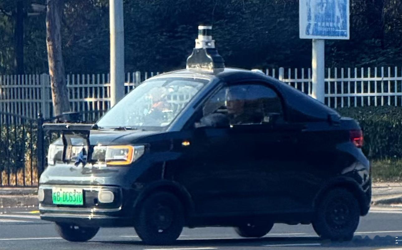 一个有点神奇的ADAS测试车,宏光MINI EV敞篷版改的硬顶,分别在车顶、车头安装传感器。所以这是哪家公司的测试项目?新能源汽车