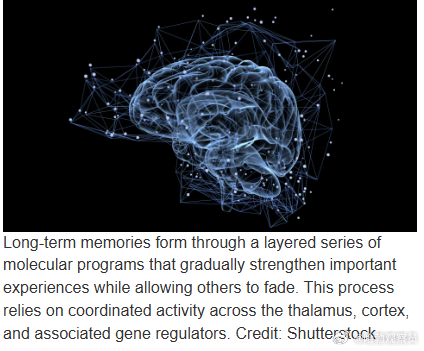 Nature刊文:揭示人脑“选择性记忆”的机制!人脑的有些记忆会持续一生,而另一些则会快速消退。为何会有这种选择性?近日,美国洛克菲勒大学(Rockefeller University)研究团队在《自然》(Nature)发表研究,首次揭示大脑通过时序性分子程序维持长期记忆的神经机制。 研究人员通过设计新型行为范式,使小鼠在数周内形成并选择性巩固记忆,进而监测记忆巩固与遗忘过程中的分子程序。实验发现丘脑与前扣带皮层中的三种转录调节因子—— CAMTA1 、 TCF4 和 ASH1L ,以严格的时间顺序参与记忆维持: CAMTA1 在记忆形成后数天内发挥作用,而 TCF4 与 ASH1L 则在后续数周内依次激活,共同构成记忆稳定的分子基础。这些因子虽不参与记忆的初始形成,但对记忆的长期维持具有至关重要的作用。该研究首次提出,记忆维持依赖于时序性转录级联而非单一分子开关的新模型,为理解记忆持久性机制提供了全新理论依据,这对阿尔茨海默病等记忆障碍疾病的研究具有重要启示。热门微博 科学新闻 大脑研究 记忆研究