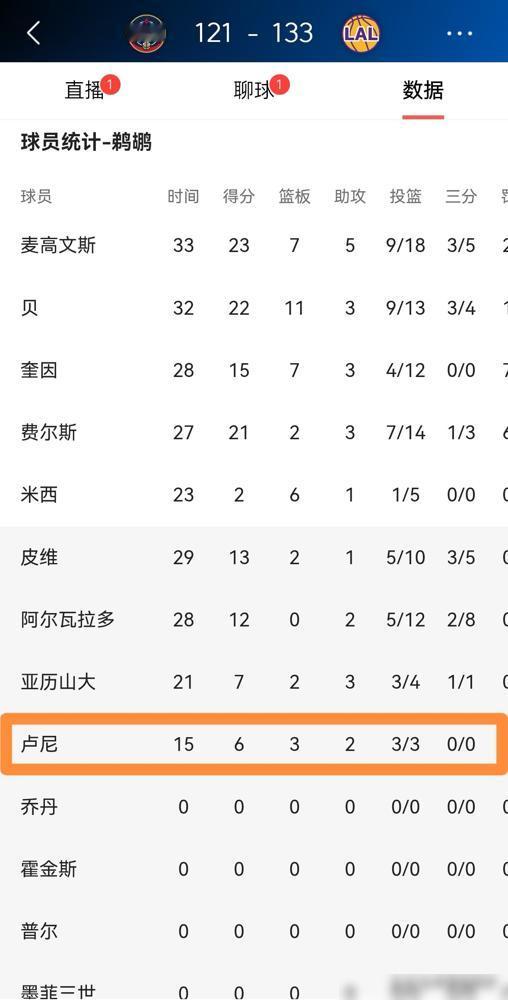 我真为鹈鹕老将卢尼感到不值! 在今天鹈鹕客场以121,133输给湖人的比赛中,卢尼替补出战15分钟,投篮3中3非常高效的砍下6分3篮板2助攻1抢断。 可记分牌上刺眼的121比133,像一盆冷水浇灭了所有闪光点。 这就是老将的无奈吗? 在黄金年龄,却要陪着重建中的球队吞下连败的苦果。 想想他在金州的日子,虽然数据不抢眼,但每次挡拆扎实得像一堵墙,篮板卡位时总能把对手死死挡在身后。 勇士的体系放大了他的价值,让他成为冠军拼图中沉默却关键的一环。 可如今到了新奥尔良,一切都不一样了。 这支球队像一艘迷失方向的船,战术混乱,防守松散。 卢尼这样的球员,需要的是稳定的体系和明确的角色,而不是在输球的泥潭里挣扎。 更讽刺的是,鹈鹕管理层今年夏天用两年1600万签下他时,口口声声说要补充经验丰富的老将。 可现实呢? 队里还囤积着米西、奎因这些需要培养的年轻内线。 卢尼的出场时间被切割得支离破碎,战术地位模糊不清。 这哪里是补强,分明是把一块好钢扔进了锈铁堆。 或许有人会说,职业体育本就是生意,球员不过是资产。 但当我们看到一位兢兢业业的老将,在有限的出场时间里依然交出百分百的答卷,却要因为管理层的混乱规划而背负失败的责任,这种不公平感刺痛着每个真正懂球的人。 卢尼的遭遇不是个例,它折射出联盟中那些“过渡期球队”的通病,盲目签约、缺乏规划、浪费球员巅峰。 这场比赛的最后时刻,当湖人球迷开始庆祝胜利,镜头扫过卢尼时,他脸上没有愤怒,没有沮丧,只有一种认命般的平静。 这种平静比任何怒吼都更让人心疼。 一个球员的黄金年华能有几载? 在勇士,他学会了如何赢球。 在鹈鹕,他却在学习如何面对无休止的失败。 这种反差,是对职业体育残酷性的最真实注解。 我们不该只是为卢尼感到不值,更要追问,为什么优秀的角色球员总是难以找到合适的归宿? 当球队建设缺乏长远眼光,再好的拼图也会被浪费。 卢尼今晚3投3中的表现像一面镜子,照出了他的职业,也照出了鹈鹕重建路上的迷茫。 球迷们会记住这个夜晚,记住一个老将在失败中依然保持的尊严,这比任何连胜纪录都更接近篮球的本质。