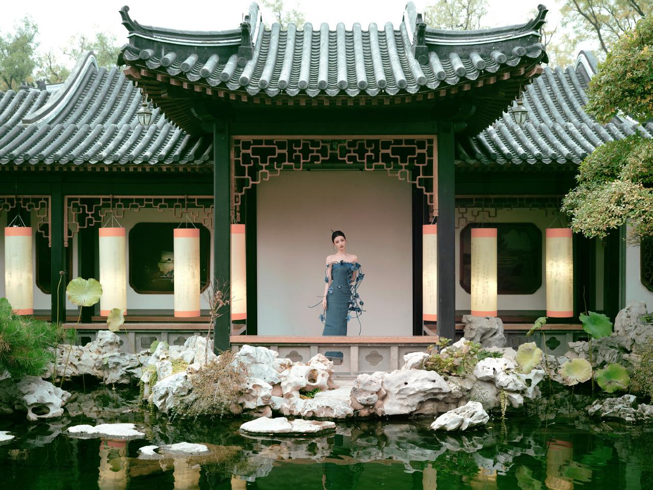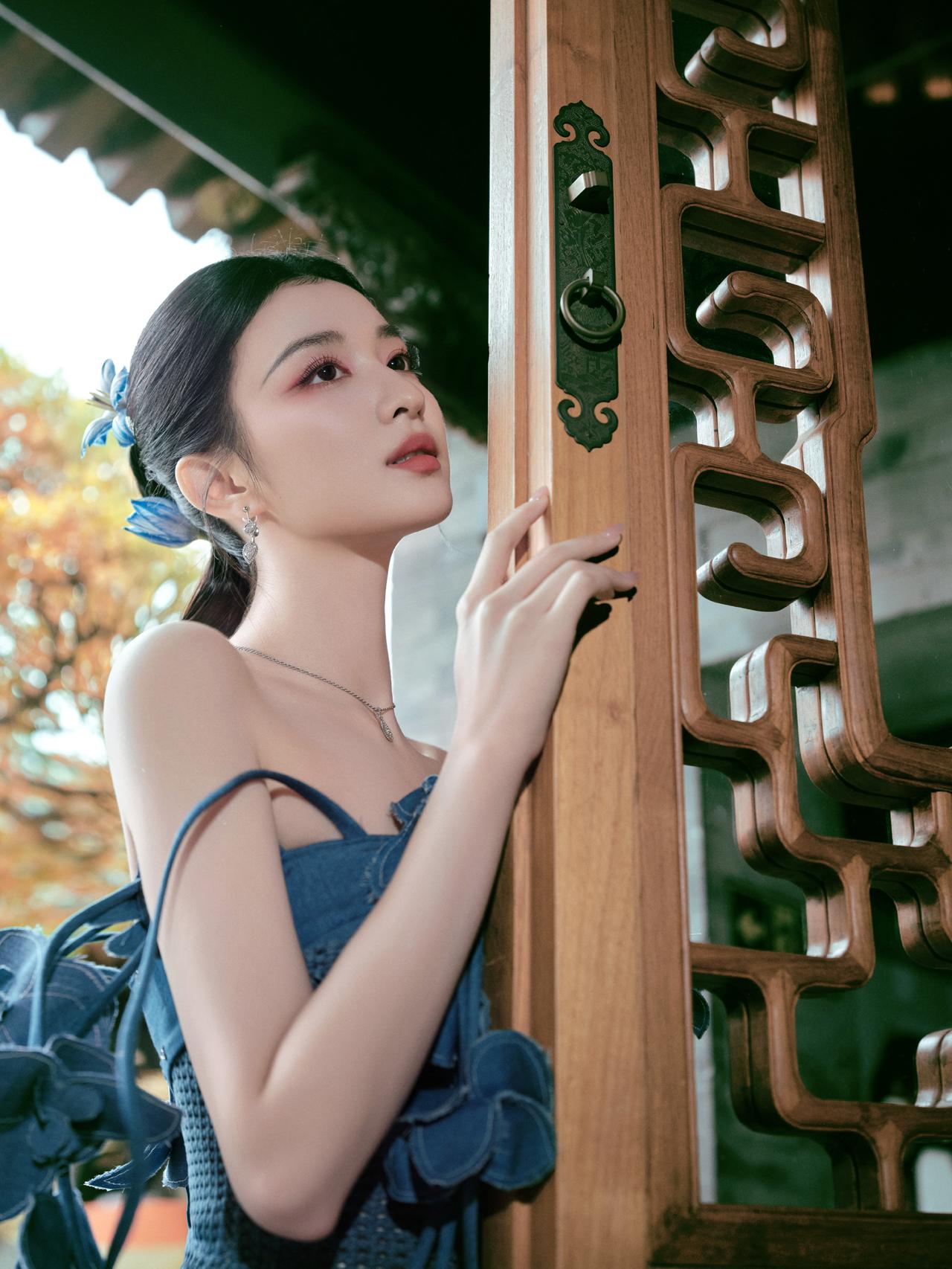 王家第一美女,王楚然!!!! 古风庭院中的优雅女子,静谧的氛围,宛如画中人。