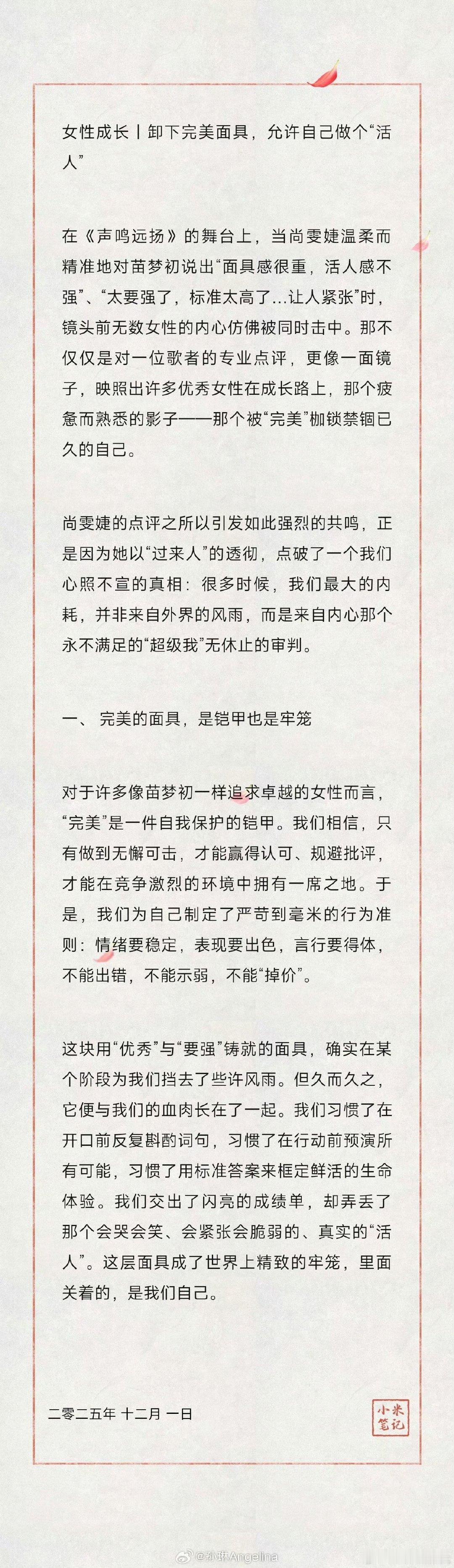 内耗人多听听尚雯婕这段话 尚雯婕戳破内耗真相:“过度在意别人的眼光,只会把自己困在情绪牢笼里”,学会屏蔽杂音,才能活得舒展自在~声鸣远扬