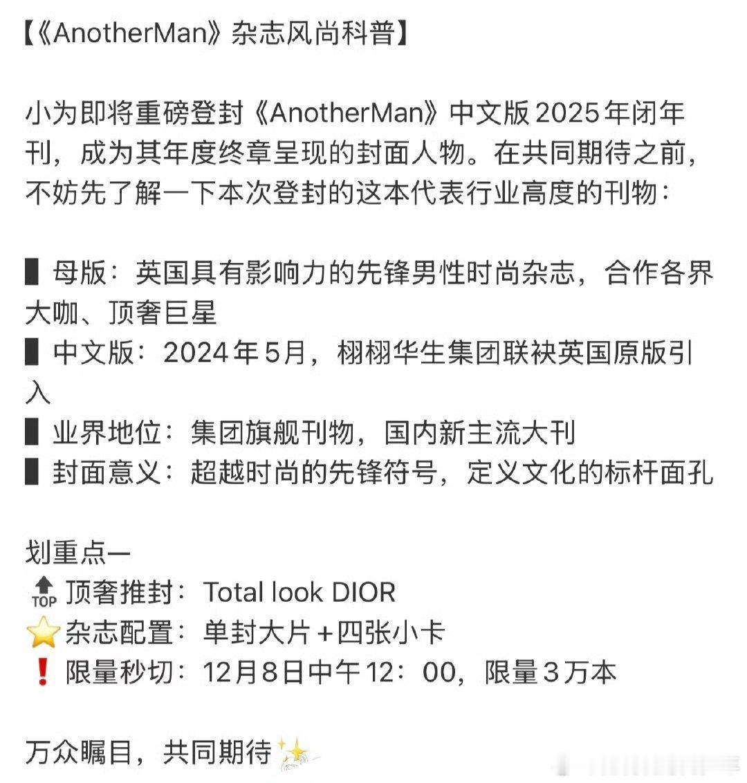 邓为新杂志,顶奢推封 闭年刊 一起期待邓为AnotherMan中文版12月封面杂