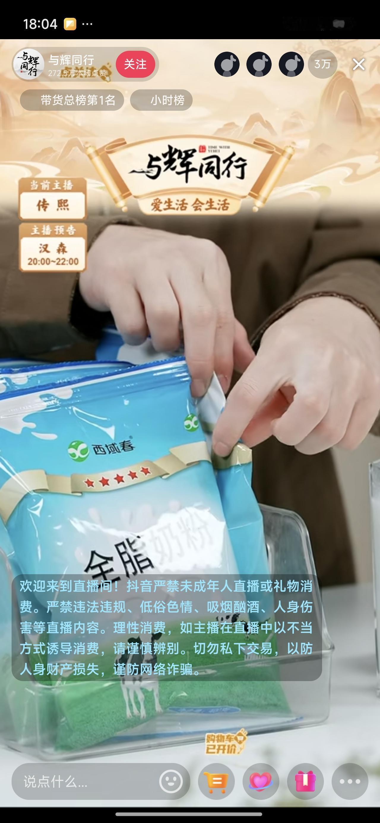 那些不知道去哪里买奶粉的,与辉同行又在卖!你看抖音给到的优质主播的称号!你不相信他,你相信谁? 不可能连抖音都不相信吧! 总比那些贴牌要好吧!植脂末,香精。混合一下,就拿来给小孩老人喝?不要了吧! 吃点正经玩儿,不要仿大牌的啦!营养成分几乎为零。 太敢想了,太敢干了!