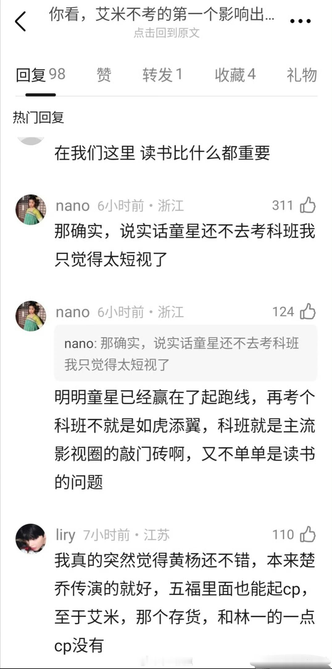 谁能想到黄杨钿甜路人缘回暖竟然是因为同期花艾米不参加艺考→_→