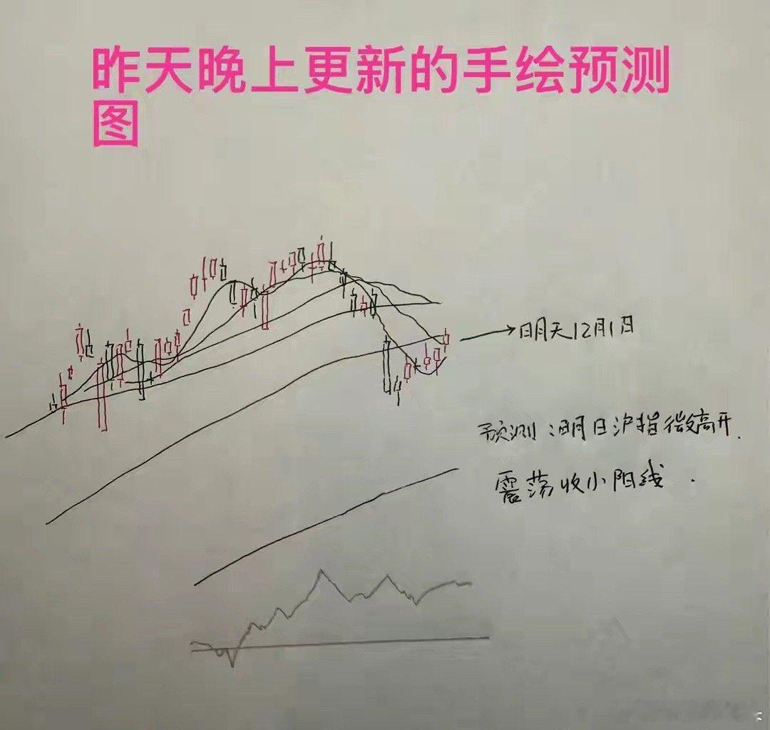 收评: A股如期上涨,明天是否继续看多?莎莎给昨天的预判打了90分收盘了,三大指数全线上涨。截至收盘上证指数涨0.65%,深证成指涨1.25%,创业板指涨1.31%。截止收盘,三市上涨的家数3398家,下跌的家数1872家。截至收盘,三市的成交额1.89万亿,比上一个交易日巨幅增量2,917亿。从今天市场的走势来看,市场再次上涨,完全符合我的预判。大家请看图一莎莎昨天上午更新的,关于今天走势的手绘预测图。大家可以看到,今天市场的走势基本上与莎莎的预判是吻合度非常高的。所以今天这一幅图打90分是没有问题的。而且上周星期五收盘之后,我就明确告诉大家,市场的成交量走到阶段地量的时候,恰恰是主力即将重新激活市场,重新给市场注入新的流动性的时候。今天市场2900多亿的增量就是最好的说明——确实地量之后,主力再次选择进场。那么现在问题来了,几乎连续反弹6个交易日的情况下,明天市场还能再看多吗?明天会有加速阳线吗?在这里莎莎开门见山亮观点:继续看多,没有问题。甚至不排除短线有加速行情。为什么这么说?大家听莎莎讲三个具体理由第一,上证指数今天的收盘点位3914点,据我观察,离真正的压力点还有一定的空间。大家请看下图图二,上证指数日线图。从日线图当中可以看到,在这里莎莎预设了一个下行通道。而下行通道上轨的压力位,才是目前短线的真正压力点。这个点位可能要到达3950点附近。第二,今天下午的时候,我们可以看到外盘股指期货,比如说美股指期货都出现了明显的调整。迷你道琼斯指数期货的跌幅依然超过了0.5%。 A股市场下午顶着外盘市场股指期货调整的压力独立走强。并且出现了明显的增量,这是典型的多头强势的信号。所以在这种情况下,继续看多没有问题。第三,从最近市场连续几个交易日重心缓慢上移的走势来看,并且今天走出成交量加速的情况来看,市场短线的反弹趋势已经非常的清晰。而一旦趋势形成的时候,想要停下来就比较难。也就是说继续看多才是比较明智的判断策略。所以,综合以上分析,莎莎认为明天市场短线依然有望继续上行。并且在条件合适的情况下,甚至不排除短线走出加速型的阳线。关注莎莎的朋友都知道,在今天中午的时候我明确告诉大家,市场本轮反弹的高点,短线的天花板我上调到3967点附近——目前这个观点我认为依然有效。收盘点评和大家说到这里,关于明天走势的手绘预测图,将会在稍晚一点更新,兄弟们点赞,评论➕关注就是对莎莎这个纯技术派的最大支持。