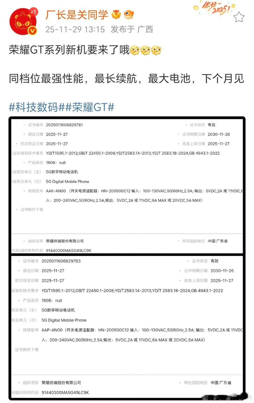 12月到了,又有很多新机即将登场。荣耀GT2系列也要来了,性能、电池、续航都很棒!