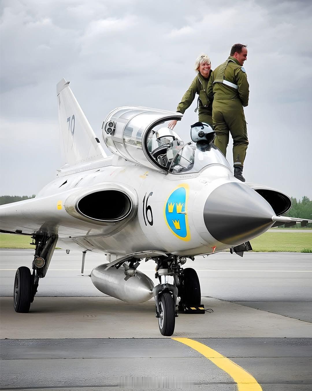 瑞典空军的机型 Saab Draken Sk35C SE-DXP没什么很可怕的完全不敢跟俄罗斯的su系列抗衡.
