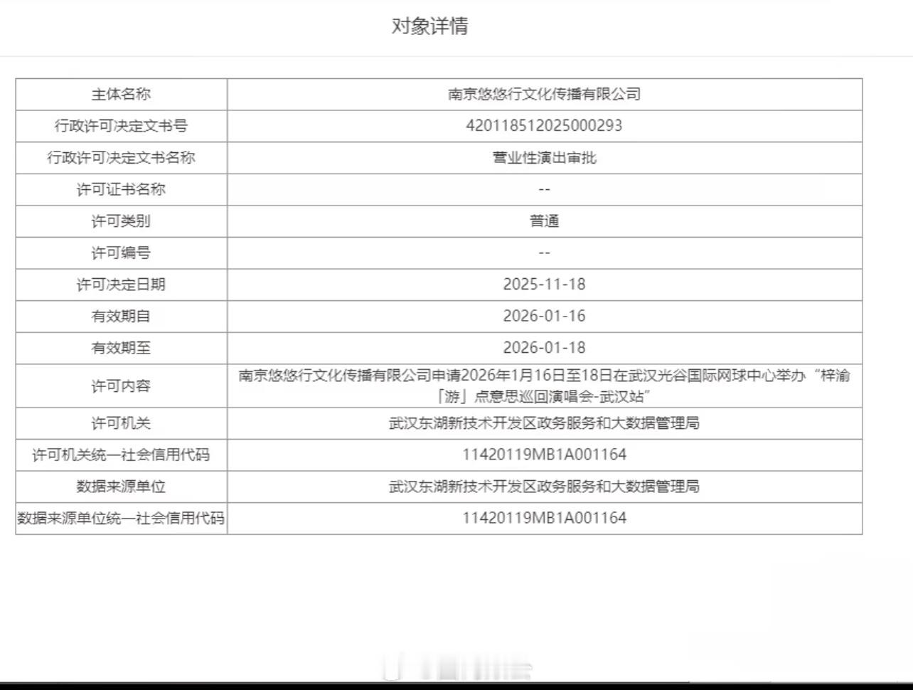 梓渝武汉演唱会定档备案