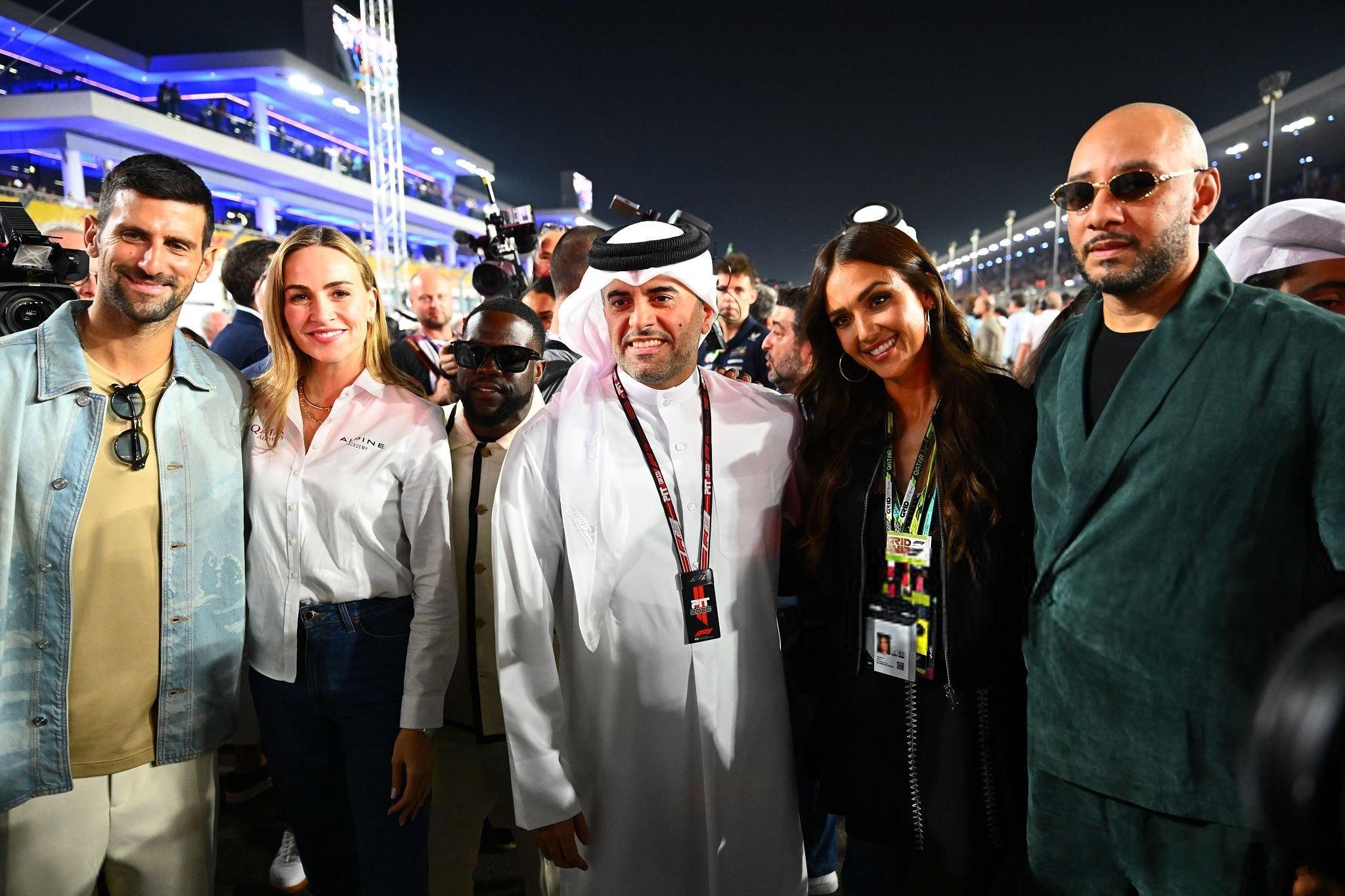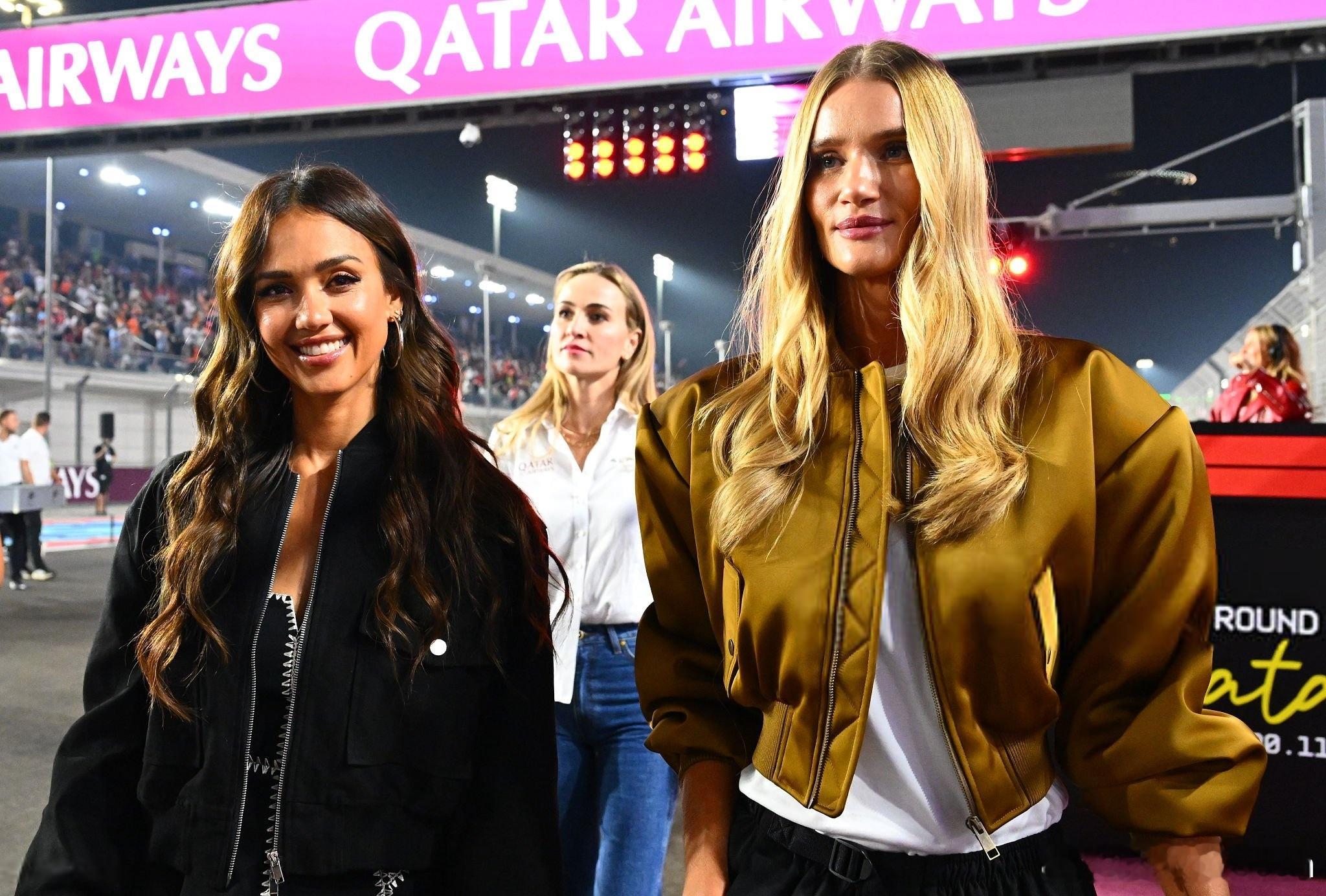 jessica alba杰西卡阿尔芭在卡塔尔的卢赛尔新城出席观看F1车赛,并与Rosie Huntington-Whiteley同框