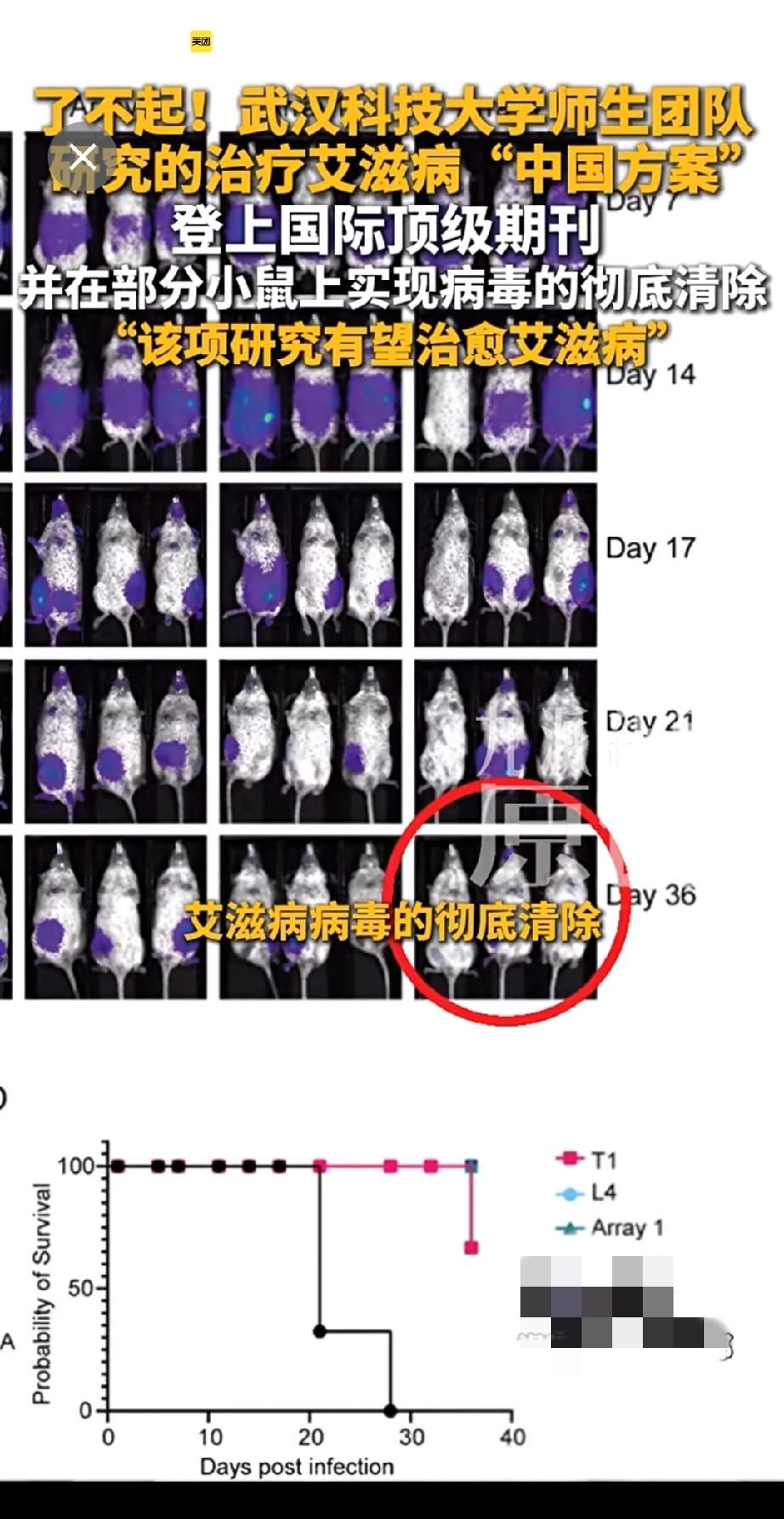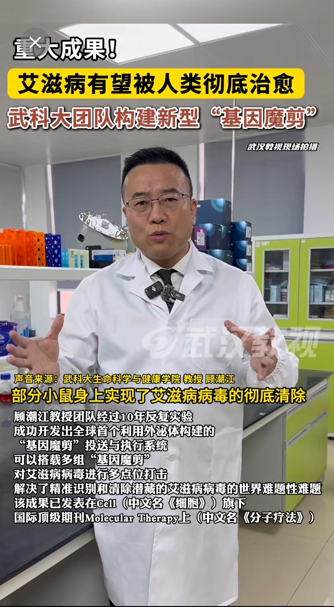 艾滋病病毒“剪刀”来了。部分小老鼠🐭身上的艾滋病病毒被彻底清除。 艾滋病终于有希望彻底治愈了。 这项艾滋病基因剪刀技术,是武汉科技大学团队,最新研发的技术,目前已经到了临床研究阶段。 众多新闻里,很经常都看到什么艾滋病治疗新突破,但常常过了几年,又没声音了。不过这次是我觉得最靠谱,最接近能彻底治愈的技术。 这也给众多没有艾滋病的普通朋友一个启示: 好好活着,活着就有希望!! 艾滋病 目前为止,有治愈艾滋病的方法吗 艾滋病感染者 艾滋病防治宣传