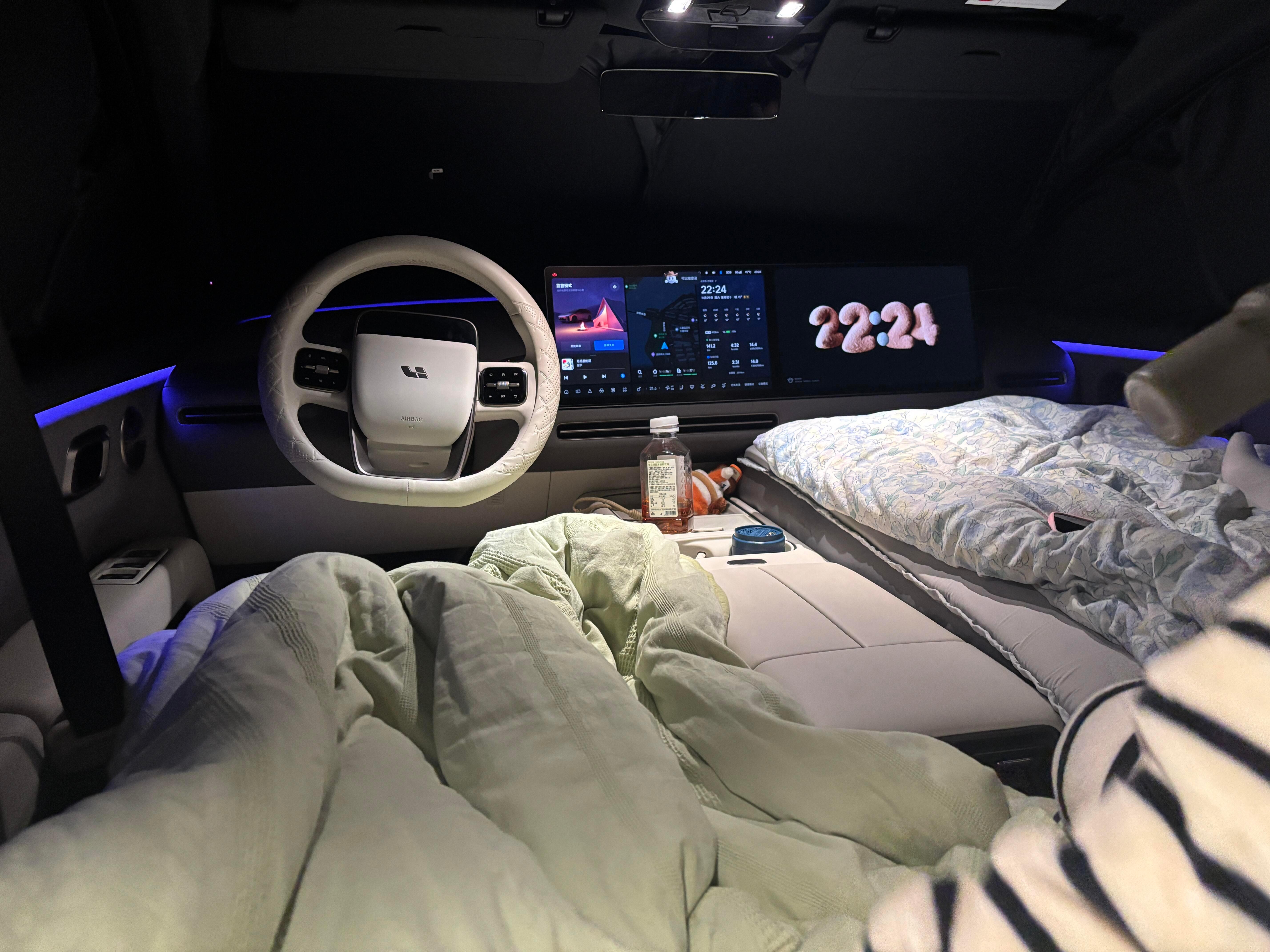理想i6露营大床模式确实香无缝平床设计不用垫褥,躺下直接歇。智能控温加静谧座舱,睡觉安稳隔音也到位,副驾位我另加了张床垫,一样稳车外是草地清风,车里是自在小窝,随手拍都很出片,这种露营的惬意才是电车生活的精髓理想 i6新能源汽车