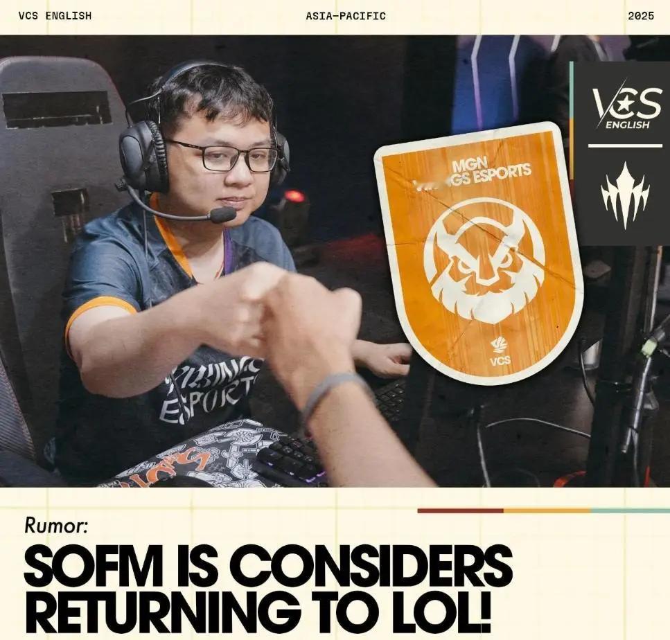 主教练热身完毕?越媒爆料:SofM即将回归职业赛场担任辅助位今日MVKE宣布SofM卸任主教练一职,后续越南媒体爆料Sofm本次回归预计将转型辅助Sofm也在个人社媒更新了一张老照片并配文“一切开始的地方”sofm竞技游戏英雄联盟s15