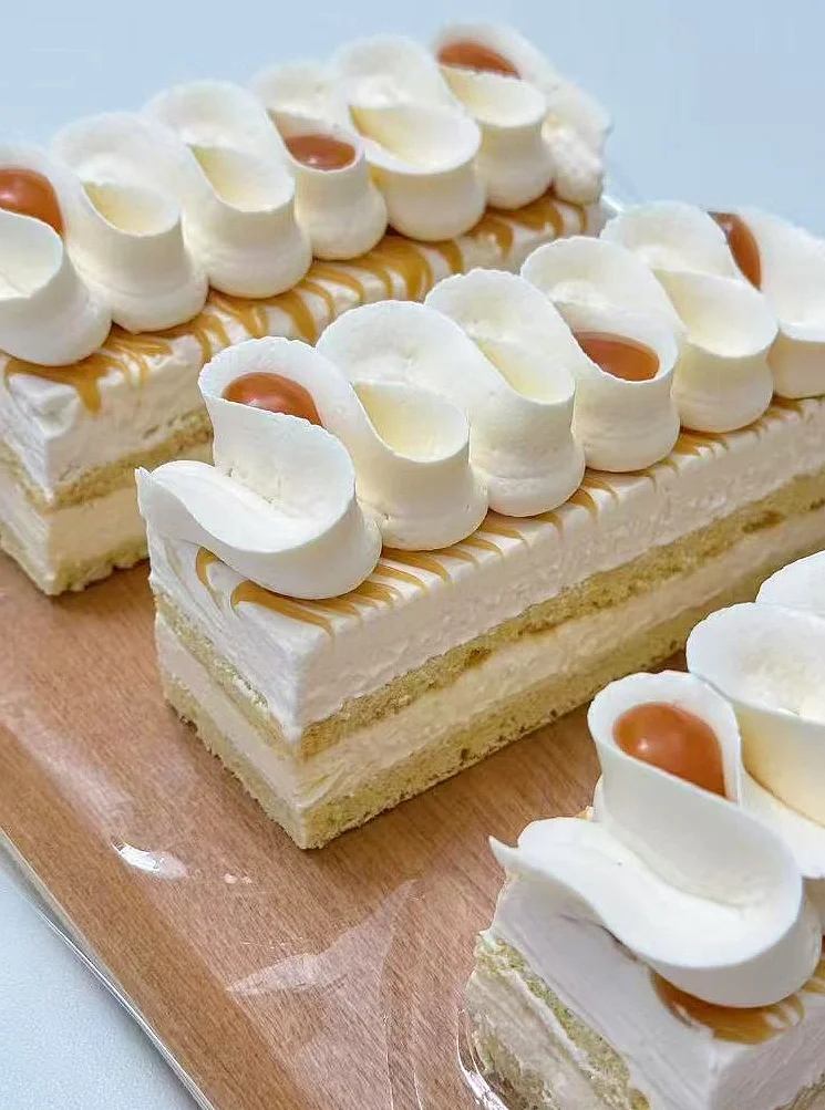 上周的直播,我邀请了两位粉丝小姐姐来到现场一起品鉴法国奶油与法式甜品制作。感谢到场支持的朋友,也感谢屏幕前守候的同学们!💖 在直播中,我们重点展示了两款法国调味奶油的制作与应用技巧: 1⃣ 香草奶油:顺滑细腻,选用天然香草荚,强调了香草风味的分布均匀性,打发时教大家如何掌握理想的奶油光泽和坚挺度。 2⃣ 焦糖奶油:浓郁醇厚,巧妙融合经典的焦糖酱,在调配时讲解了如何控制焦糖酱的加入比例,避免过甜而影响奶油的细腻口感。 📌 焦糖香草海绵切块蛋糕 全蛋液105g 细砂糖20 低粉20g 糖粉46g 杏仁粉76g 蛋清50g 黄油11g 将全蛋液和 20g 细砂糖放入搅拌碗中,用打蛋器中速搅拌。搅拌过程中,蛋液会逐渐变得浓稠,颜色变浅,体积膨胀,一直搅拌到提起打蛋器,蛋液能缓慢流下的状态,这一步类似于制作传统海绵蛋糕的蛋液打发。 然后将筛好的粉类慢慢加入打发好的蛋液中,用橡皮刮刀以翻拌的方式进行混合。从底部往上翻拌,动作要轻柔,避免过度搅拌导致面糊消泡,直到粉类和蛋液完全混合均匀,形成细腻的面糊。 将 蛋清打蛋器高速打发。然后将打发好的蛋清分三次加入到前面做好的面糊中,每次加入后都用橡皮刮刀轻轻翻拌均匀,同样要注意避免消泡。 将黄油融化。然后将融化后的黄油沿着搅拌碗的边缘慢慢加入到面糊中,用橡皮刮刀轻轻搅拌均匀。 焦糖酱: 细砂糖150g 海盐2g 水26g 淡奶油150g 黄油26g 将细砂糖、海盐和水放入平底锅中,用小火慢慢加热。加热过程中不要搅拌,让糖自然地融化。糖液会逐渐变成浅黄色,然后变成深琥珀色,并且会产生焦糖的香味。这个过程需要耐心观察,当糖液达到理想的焦糖颜色(一般是深琥珀色)后,立即关火。 迅速将室温下的淡奶油倒入焦糖中。 加入 26g 黄油,继续搅拌,直到黄油完全融化并且和焦糖、淡奶油混合均匀,形成光滑的焦糖酱。 焦糖奶油: 淡奶油200g 细砂糖12g 焦糖酱40g 淡奶油加入砂糖和焦糖酱搅打至8分发。 组合:底层杏仁海绵胚 + 香草奶油 中层:焦糖酱(薄薄一层)+ 杏仁蛋糕胚 + 焦糖甘纳许奶油 顶部装饰:香草奶油/点缀焦糖酱