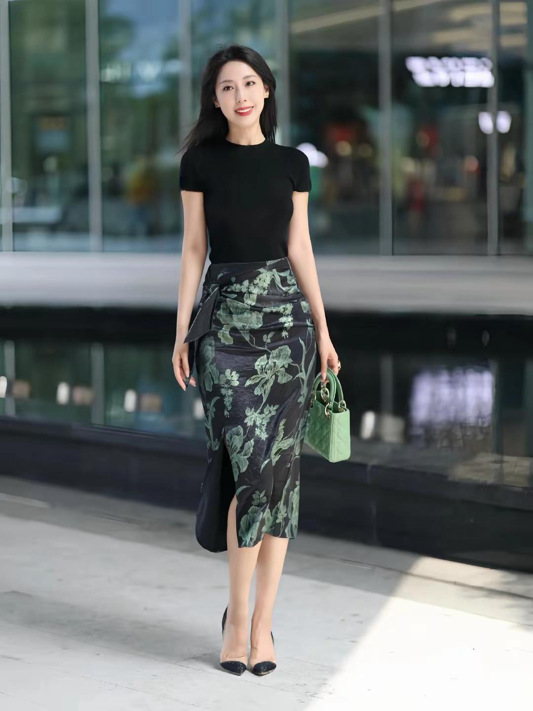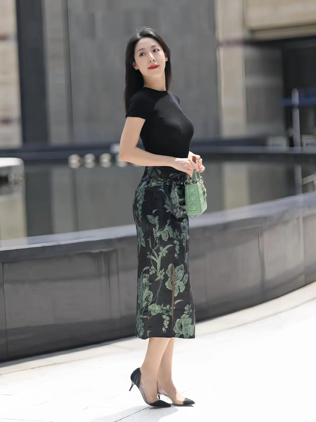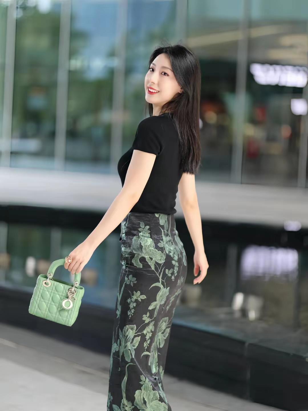 优雅黑裙搭配清新绿包,都市时尚气息扑面而来!👗👜✨