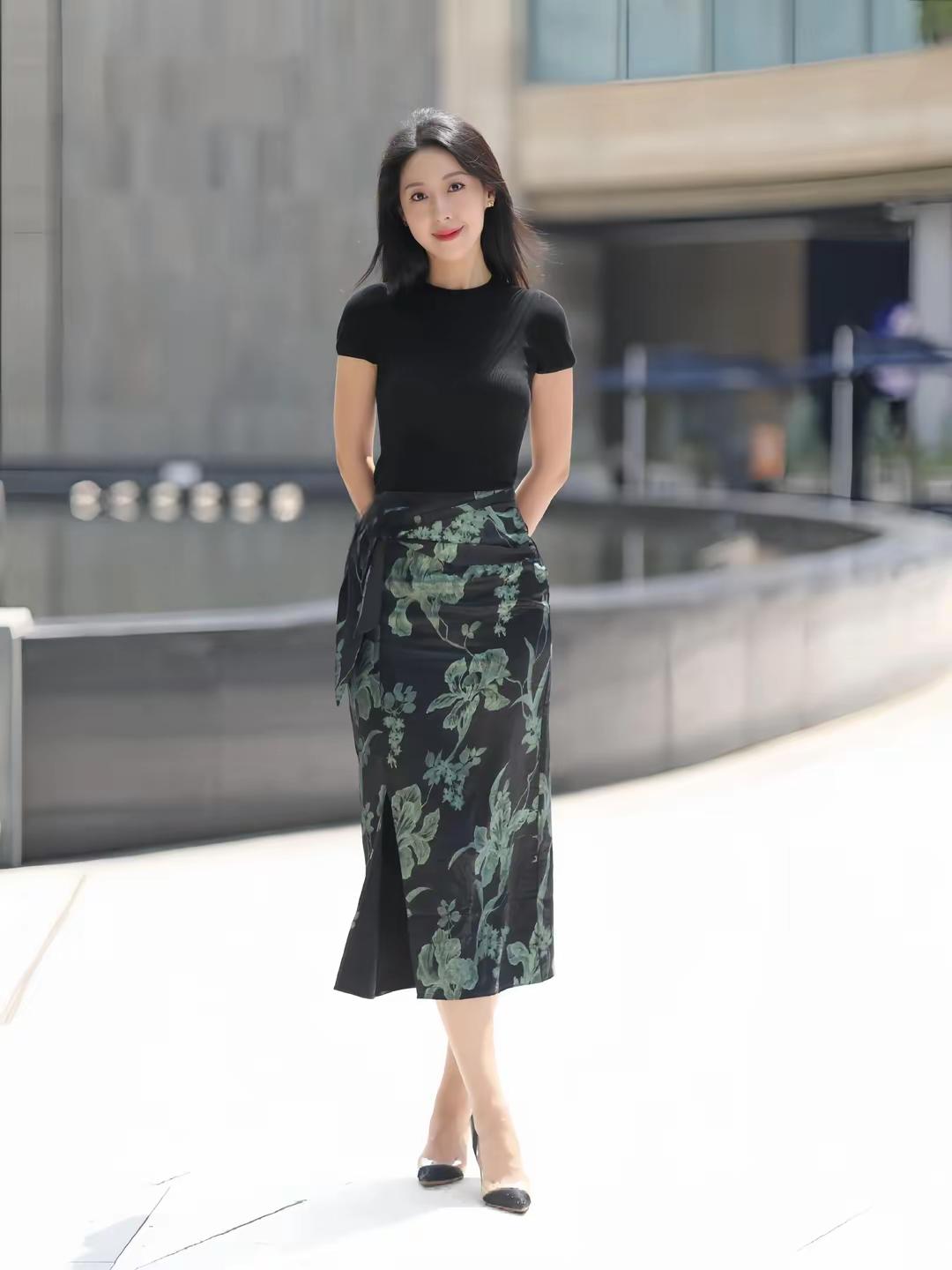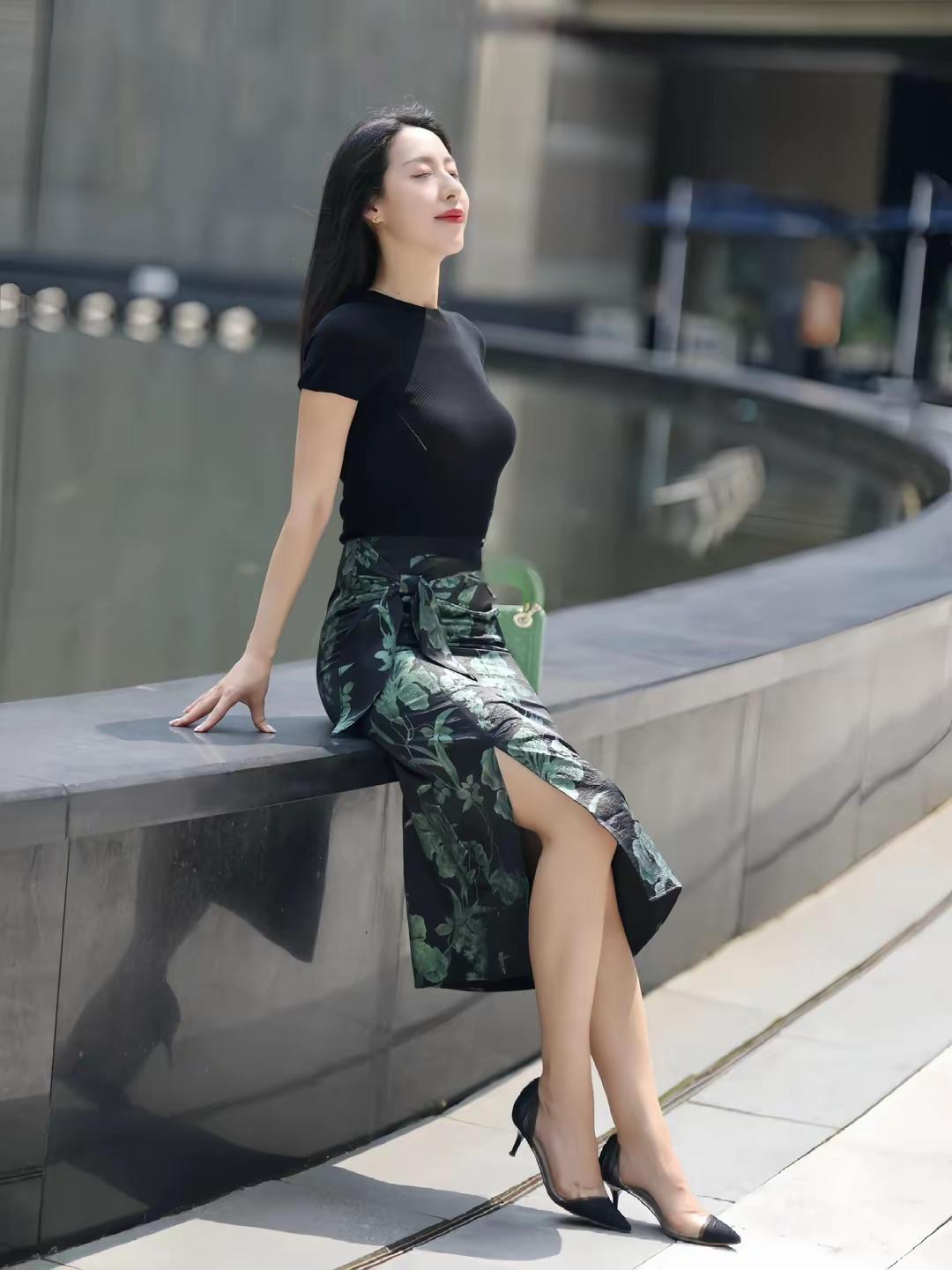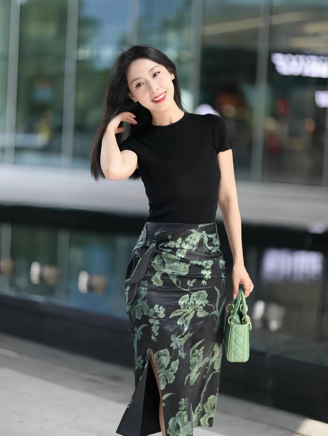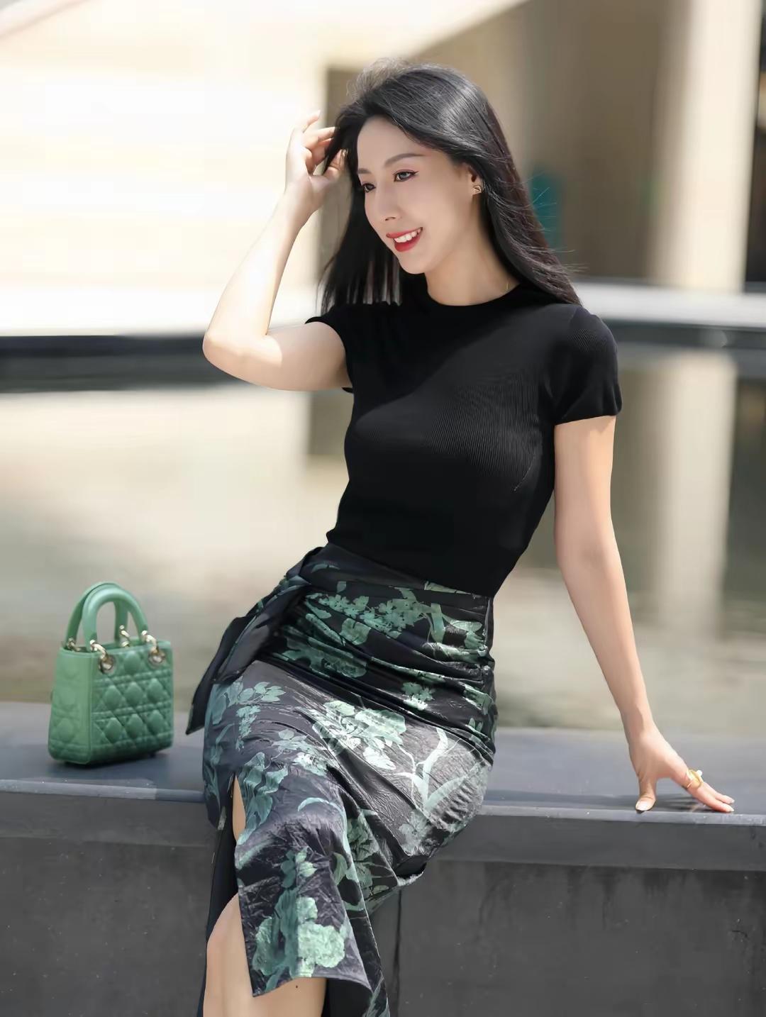 优雅黑裙搭配清新绿包,都市时尚气息扑面而来!👗👜✨