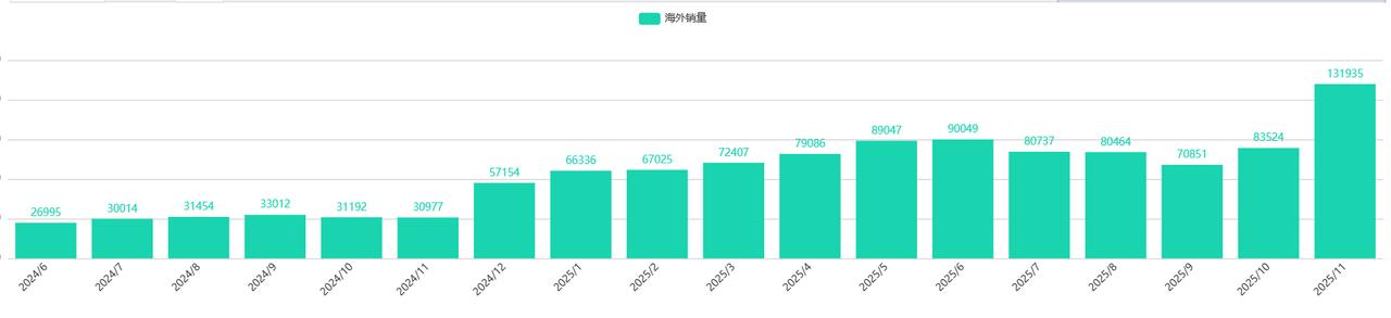 11月销量出炉,比亚迪依然是中国新能源的绝对王者。总销量高达48万辆,连续四个月环比大增,依然遥遥领先群雄,其中,出口销量更是高达13万辆!这在一个月前都是无法想象的,中国车企之前也只有奇瑞集团达到过这样的高度,而比亚迪出口的全都是高端的新能源,连特斯拉都已经望尘莫及了。可见,比亚迪不仅仅是中国新能源的引领者,更是全球新能源的引领者!